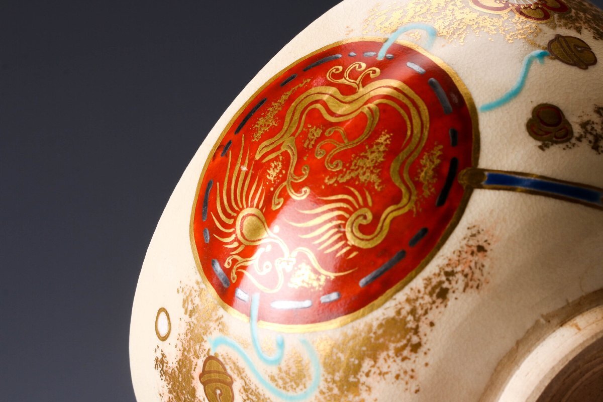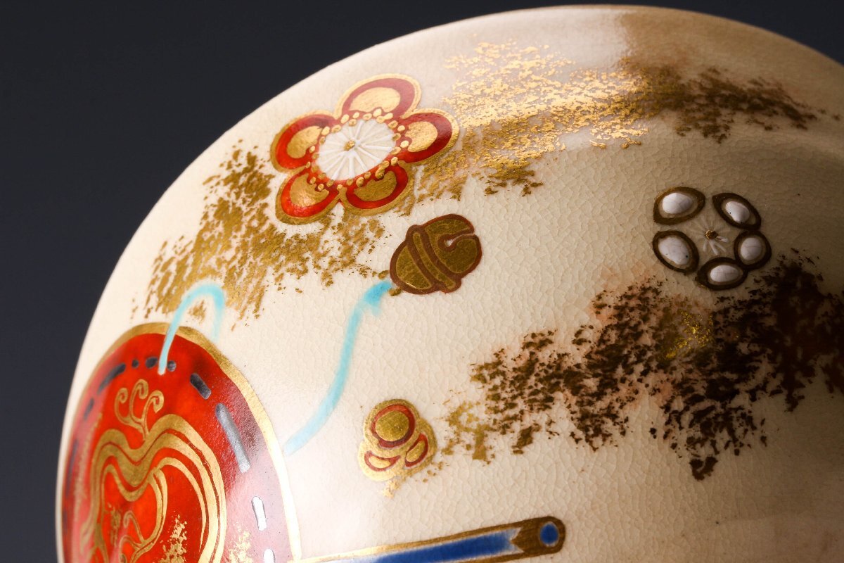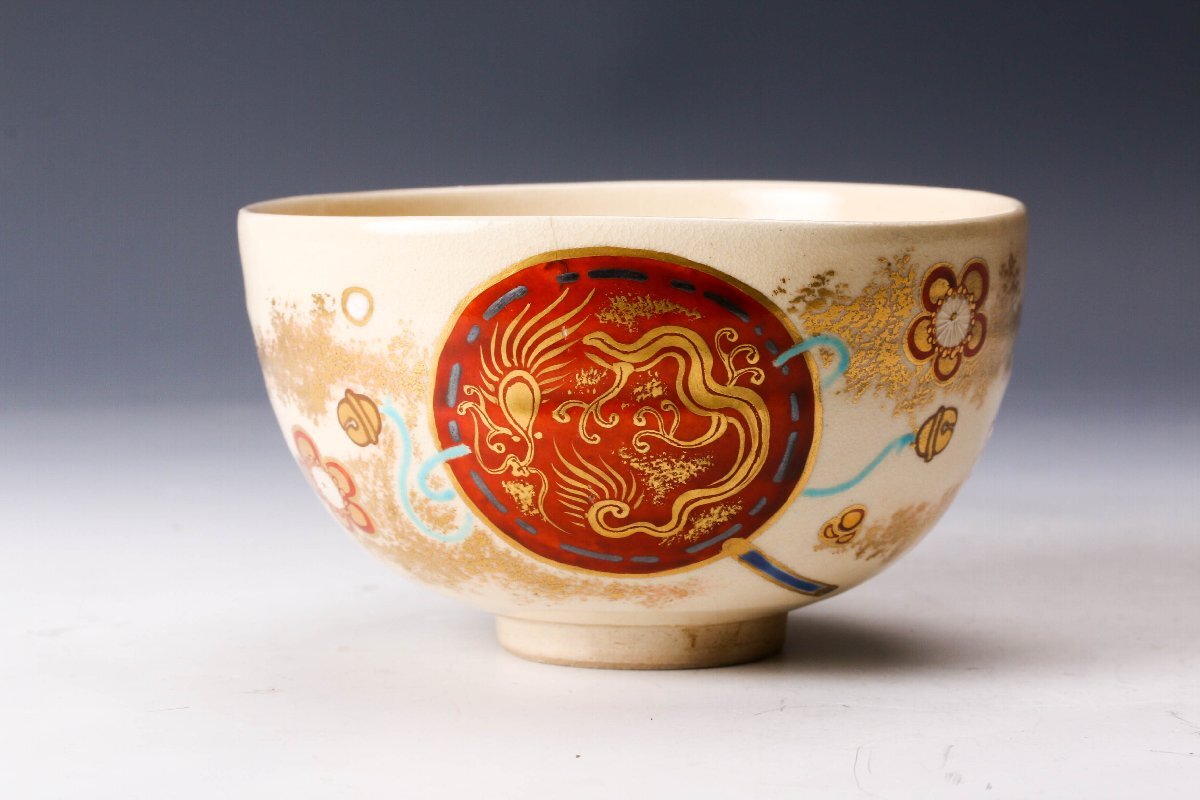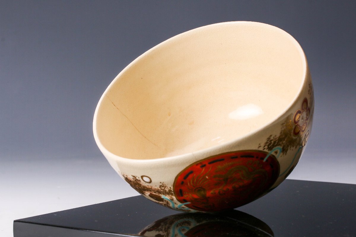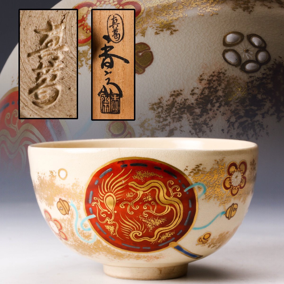 【佳香】真葛香斎 龍文振太鼓茶碗 共箱 茶道具 本物保証