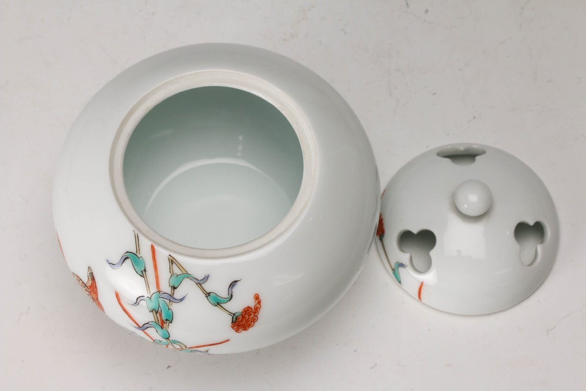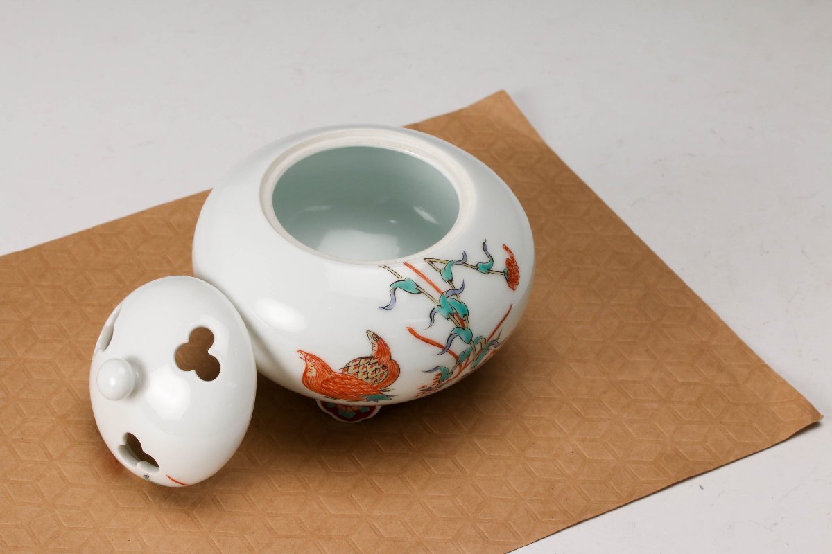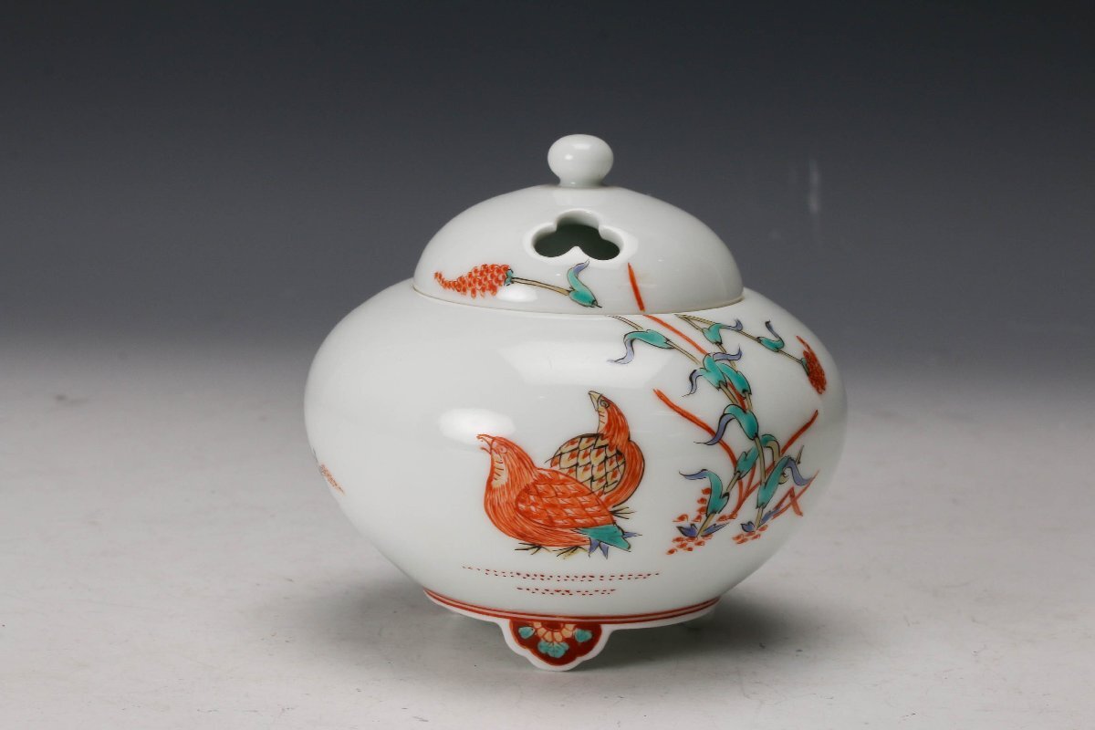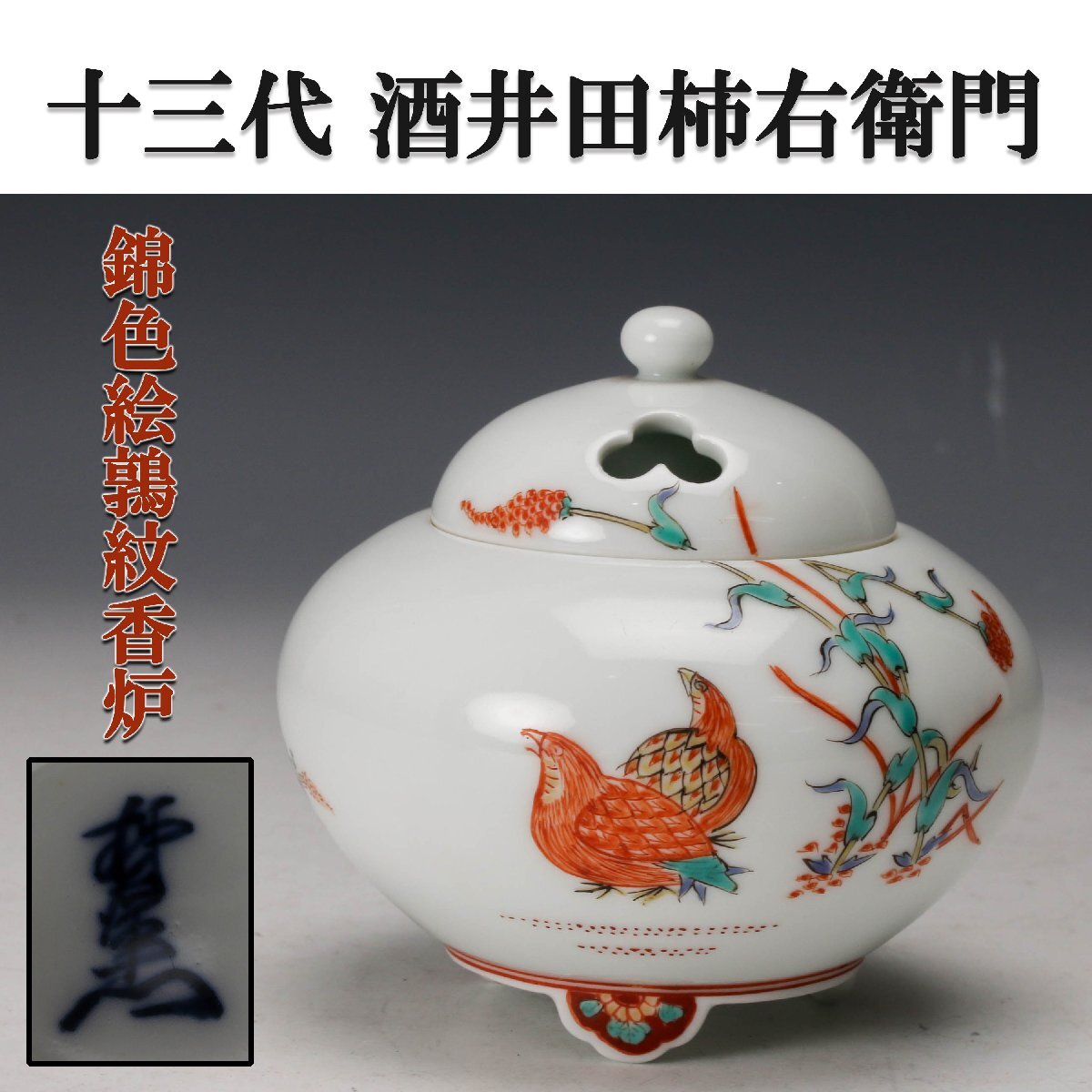【佳香】十三代 酒井田柿右衛門 錦色絵鶉紋香炉 茶道具 本物保証