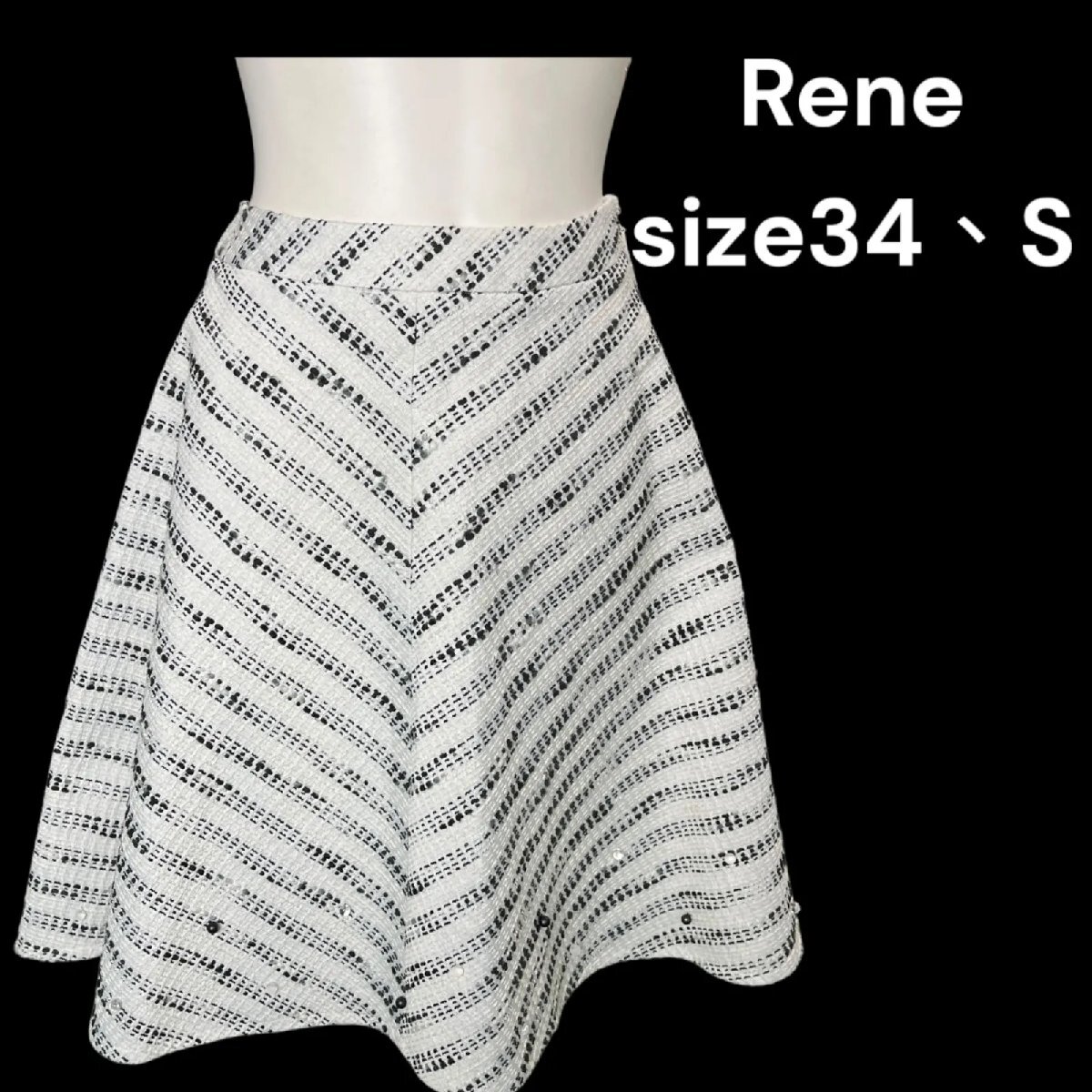 美品 ルネ Rene 沢山の丸玉が可愛い ツイード フレア スカート 34、S、7号 S5M431
