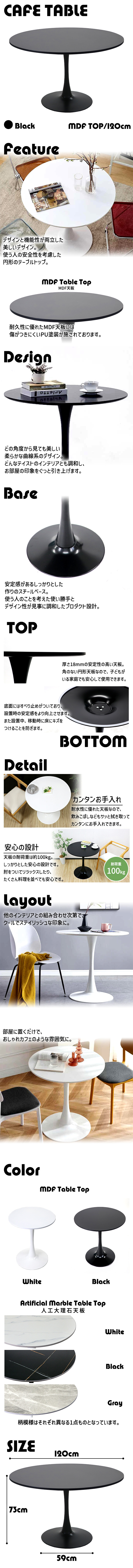 | 商品名 | 送料無料 カフェテーブル ダイニングテーブル MDF天板 直径約120cm おしゃれ 円形テーブル 丸テーブル ラウンドテーブル ティーテーブル センターテーブル 北欧 一人暮らし 組み立て簡単 軽量 コンパクト 2人 3人用 dtablet28 |