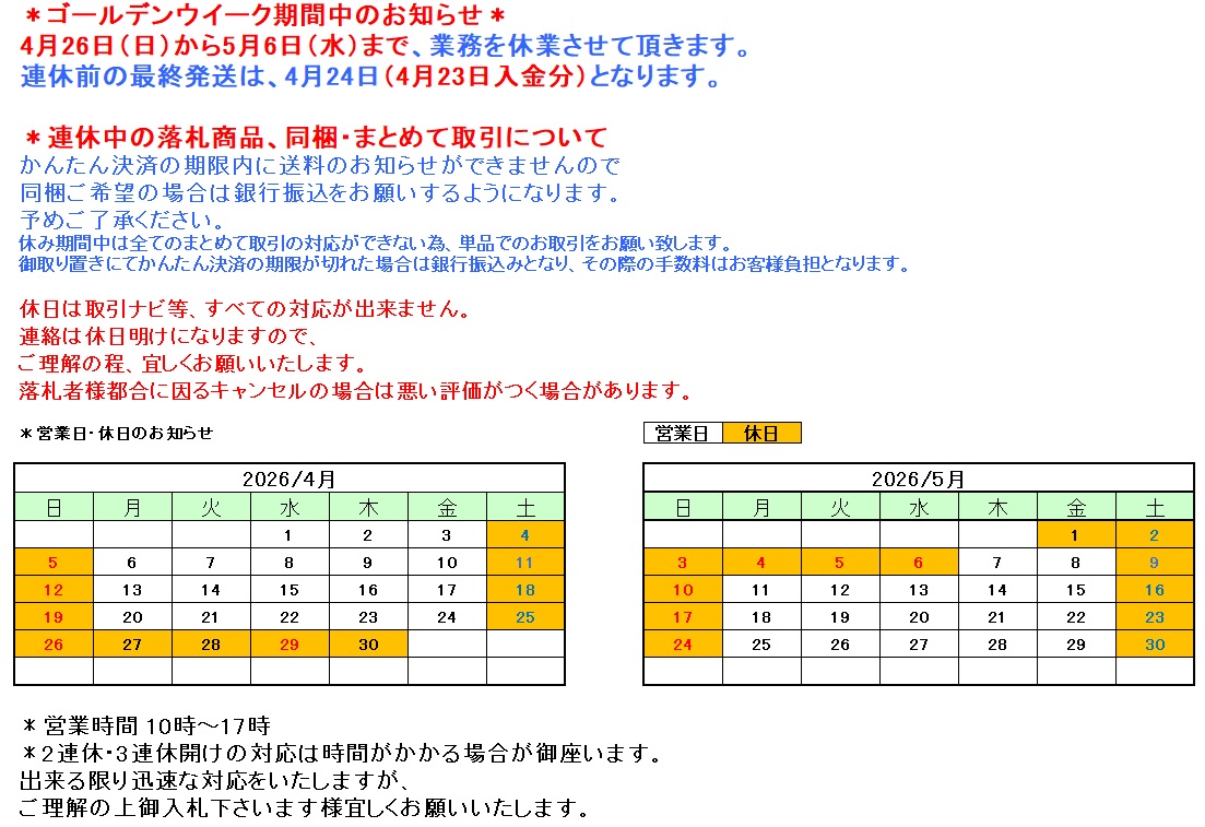 *落札後は3日以内に取引ナビの必要事項にご入力をお願いいたします*