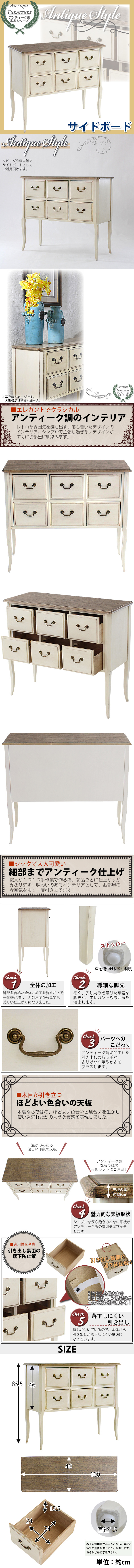 | 商品名 | アンティーク調 サイドボード W約100×D約40×H約85.5cm ホワイト 引出し 引き出し アンティーク家具 木製 アンティーク風 アンティーク インテリア 家具 キャビネ キャビネット 収納 棚 タンス 箪笥 リビング シャビーシック シャビー 白 antiqueh39wh |