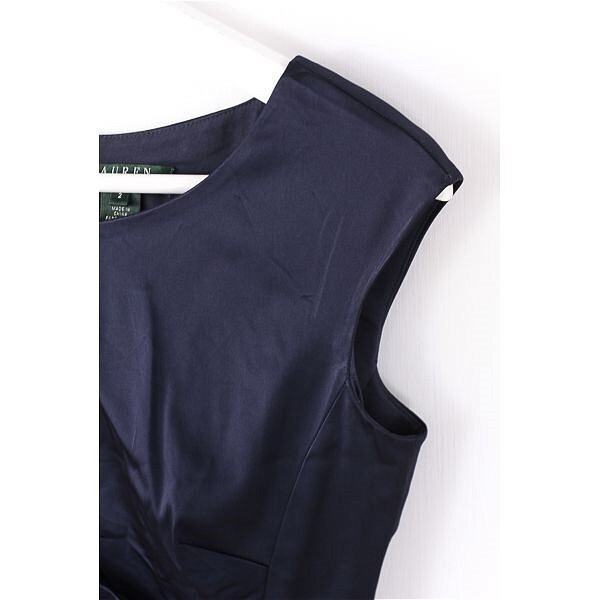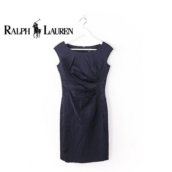 A3535/美品 春夏 RALPH LAUREN ラルフローレン 緑タグ EVENING アセテート ノースリーブ ギャザー ドレス 膝丈 ワンピース 2紫/レディース