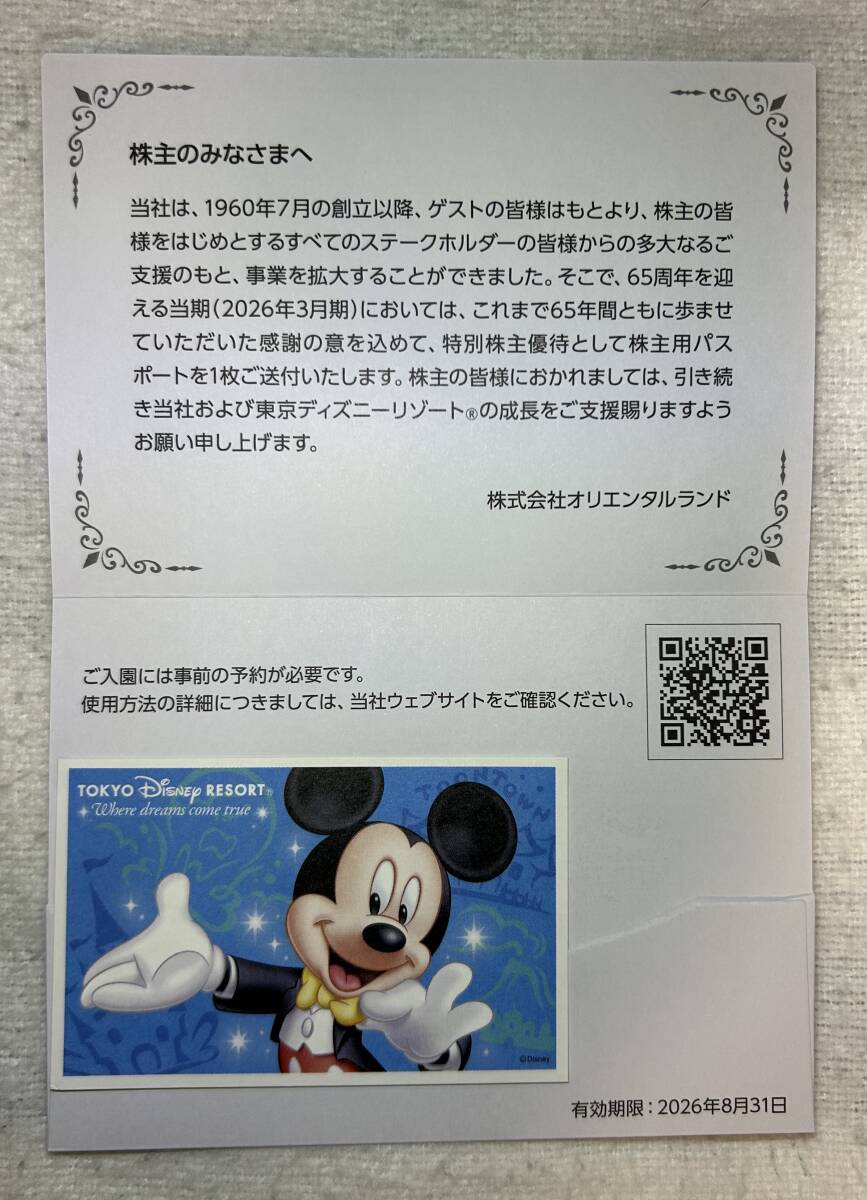 オリエンタルランド株主優待。有効期限=2026/8/31。