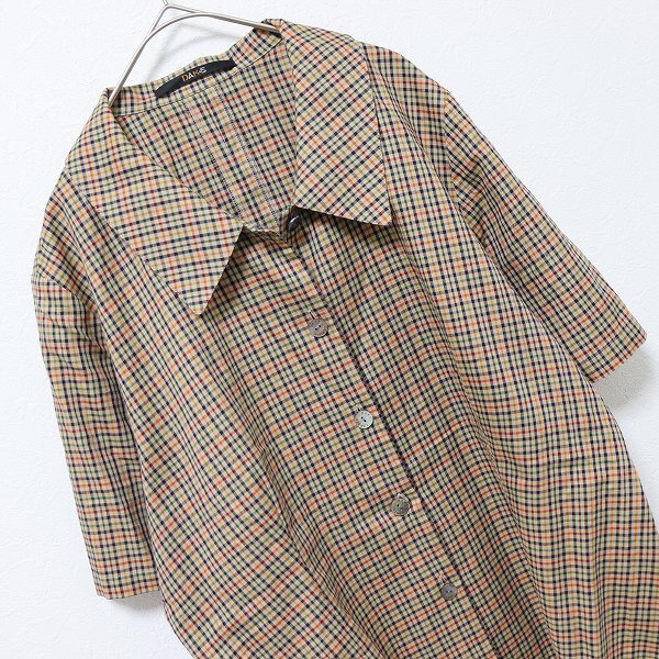 ★★年末年始休業期間中の発送とお問い合わせ業務について★★誠に勝手ながら、下記期間におけるお問合せ対応及び、発送業務をお休みさせていただきます。何卒ご了承くださいますよう、お願い申し上げます。【年末年始 休業期間】12月26日(金) :営業 [10時までのご注文は当日発送]12月27日(土)~1月4日(日):休業※休業期間中もご注文は受け付けておりますが、発送は1月5日(月)~となります。【ブランド】ダックス DAKS【アイテム】シャツ ブラウス【平置き実寸】肩幅:約 41cm袖丈:約 27cm身幅:約 53cm着丈:約 58cm【状態】目立った傷汚れなし【備考】-【色】ブラウン系 茶色系 ミックス【素材】画像をご参照ください。★当店の商品はすべてリユースアイテムとなります。特質上、些細なダメージは記載しておりませんので着用に問題のない使用感、着古した雰囲気などはご了承くださいませ。