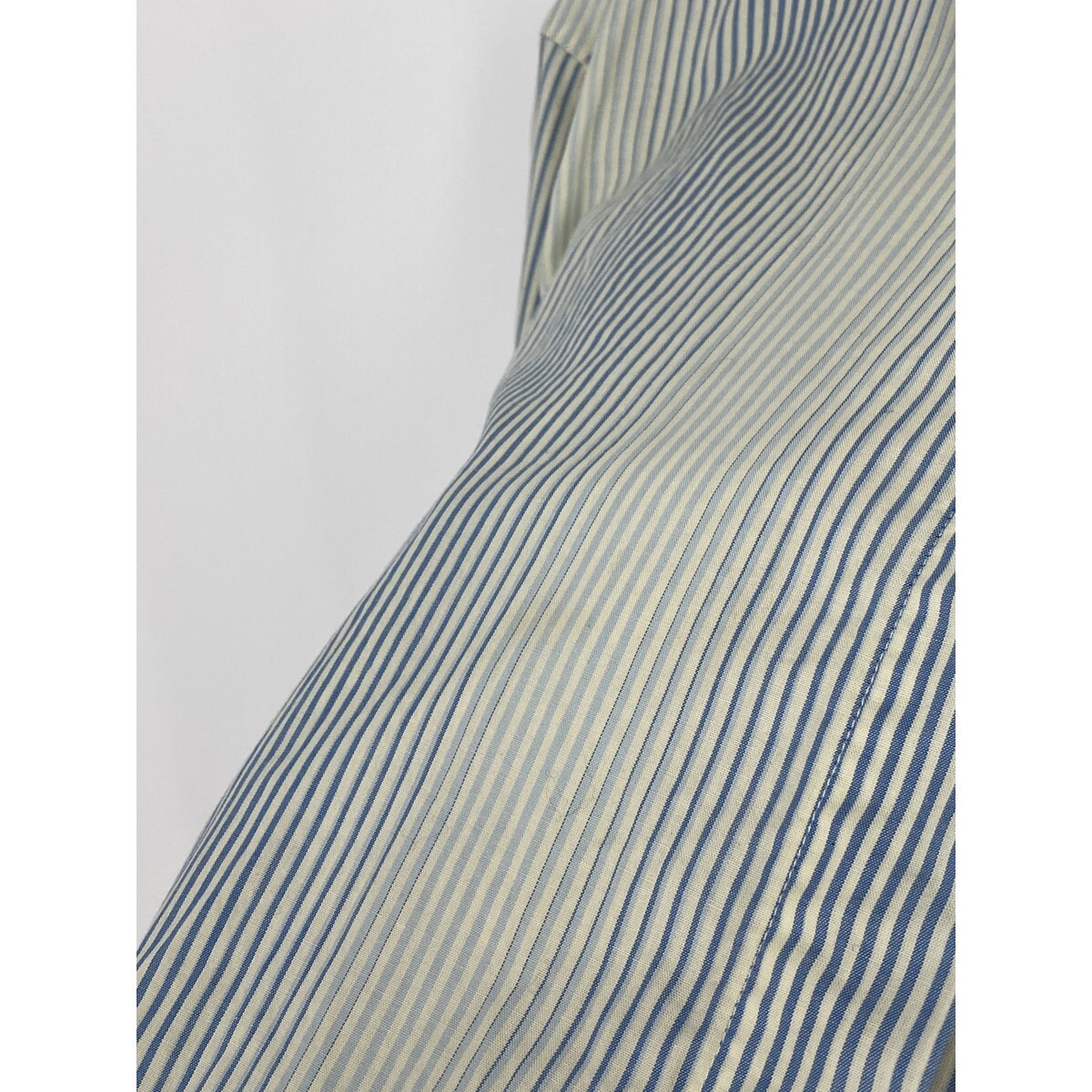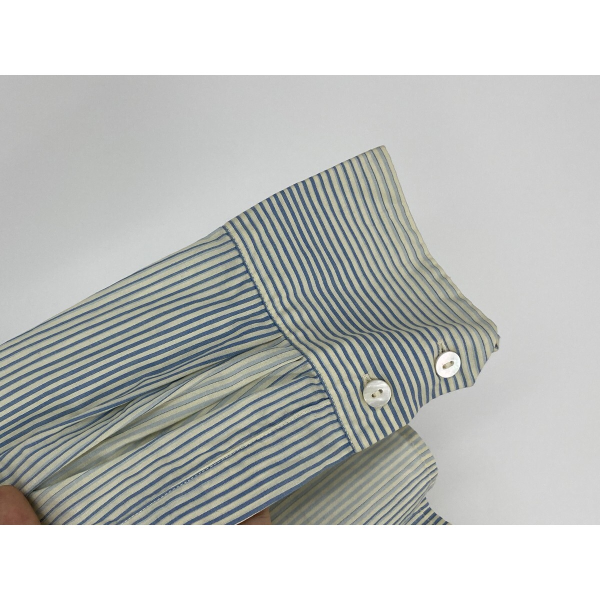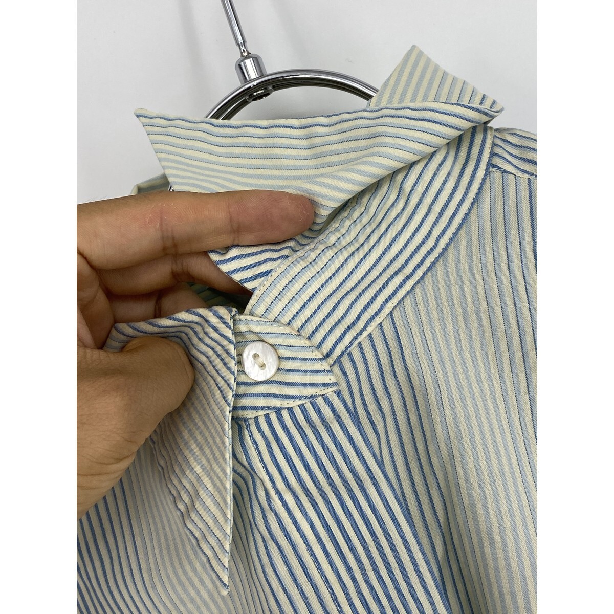 B0748/訳あり Max Mara マックスマーラ 銀タグ コットン ストライプ グラデーション 長袖 ドレス Yシャツ ブラウス 42 XL 青 緑 レディース