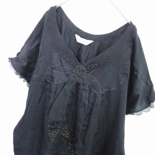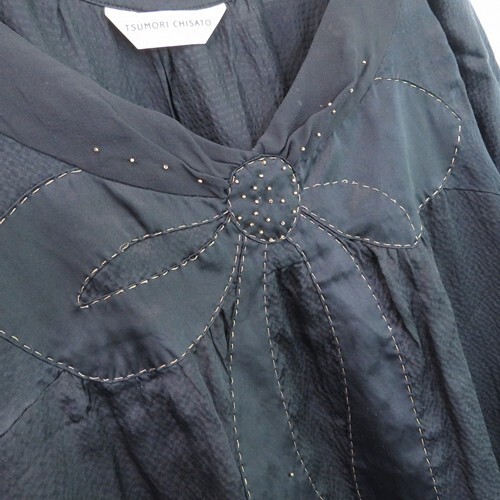 ツモリチサト tsumorichisato DRESS シルク ワンピース ドレス サテン リボン柄 ブラック a811915