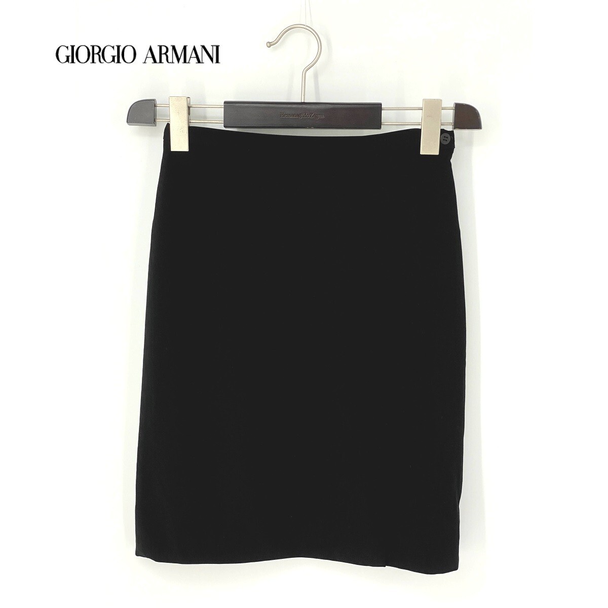 A6974/極美品 春夏 GIORGIO ARMANI ジョルジオアルマーニ 黒タグ ウール 膝丈 タイト スリム ペンシル スカート 40 黒/レディース スーツ用