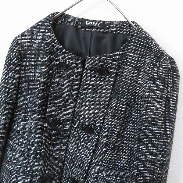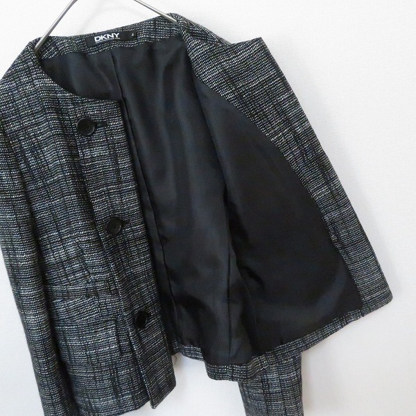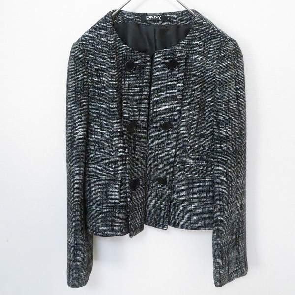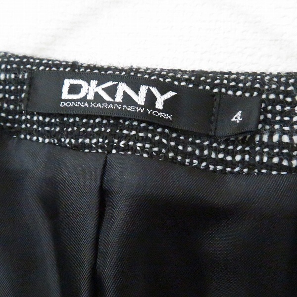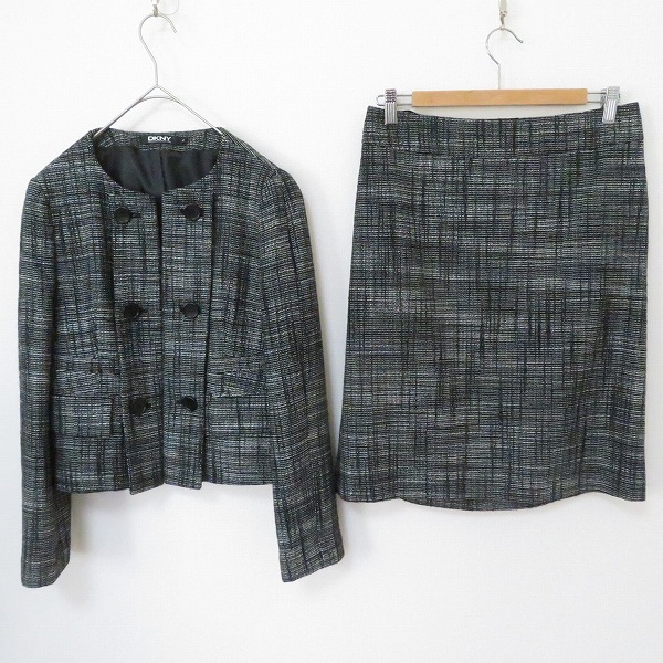 ★★年末年始休業期間中の発送とお問い合わせ業務について★★誠に勝手ながら、下記期間におけるお問合せ対応及び、発送業務をお休みさせていただきます。何卒ご了承くださいますよう、お願い申し上げます。【年末年始 休業期間】12月26日(金) :営業 [10時までのご注文は当日発送]12月27日(土)~1月4日(日):休業※休業期間中もご注文は受け付けておりますが、発送は1月5日(月)~となります。【ブランド】DKNY ダナキャラン ニューヨーク【アイテム】スカートスーツ【表記サイズ】ジャケット:4 スカート:6【平置き実寸】(トップス)肩幅:約 38cm袖丈:約 58cm身幅:約 43cm着丈:約 48cm(ボトムス)ウェスト:約 38cmスカート丈:約 57cmヒップ:約 約46cm【状態】目立った傷汚れなし【備考】-【色】ブラック系MIX【素材】画像をご参照ください。★当店の商品はすべてリユースアイテムとなります。特質上、些細なダメージは記載しておりませんので着用に問題のない使用感、着古した雰囲気などはご了承くださいませ。