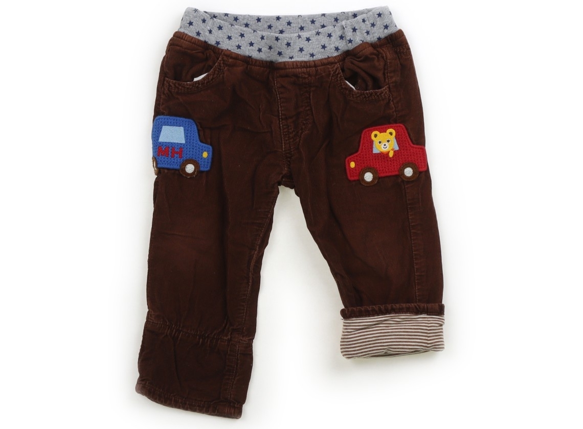 コーデュロイ。ウエストのゴムは交換穴があります。すそを折り返して2wayでご使用いただけます。使用感はありますが、特に目立つ汚れはなくまだお使い頂けそうです。