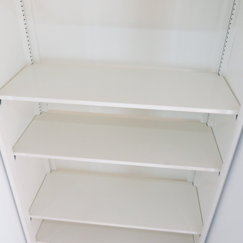 オカムラのヴィラージュシリーズ 両開き書庫が入荷致しました。お色味はホワイトです。 圧迫感のないホワイトカラーは、設置場所を選ばず、オフィスを明るく清潔な印象に保ちます。 高さのある設計で、A4ファイルや大量の書類、備品をまとめて効率的に収納可能。 観音開きの扉には鍵が付いており、重要な機密書類や個人情報などを安全に保管できます。 内部は収納物に合わせて高さを調節できる可動棚を備えているため、ロッカーや書庫としてなど、用途に応じた柔軟な使い方が可能です。 ※写真で掲載の商品そのものが届くとは限りません。複数入荷した中の1点を掲載している場合がございます。 |