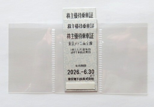 • 東京メトロ線全線株主優待乗車証 3枚です。