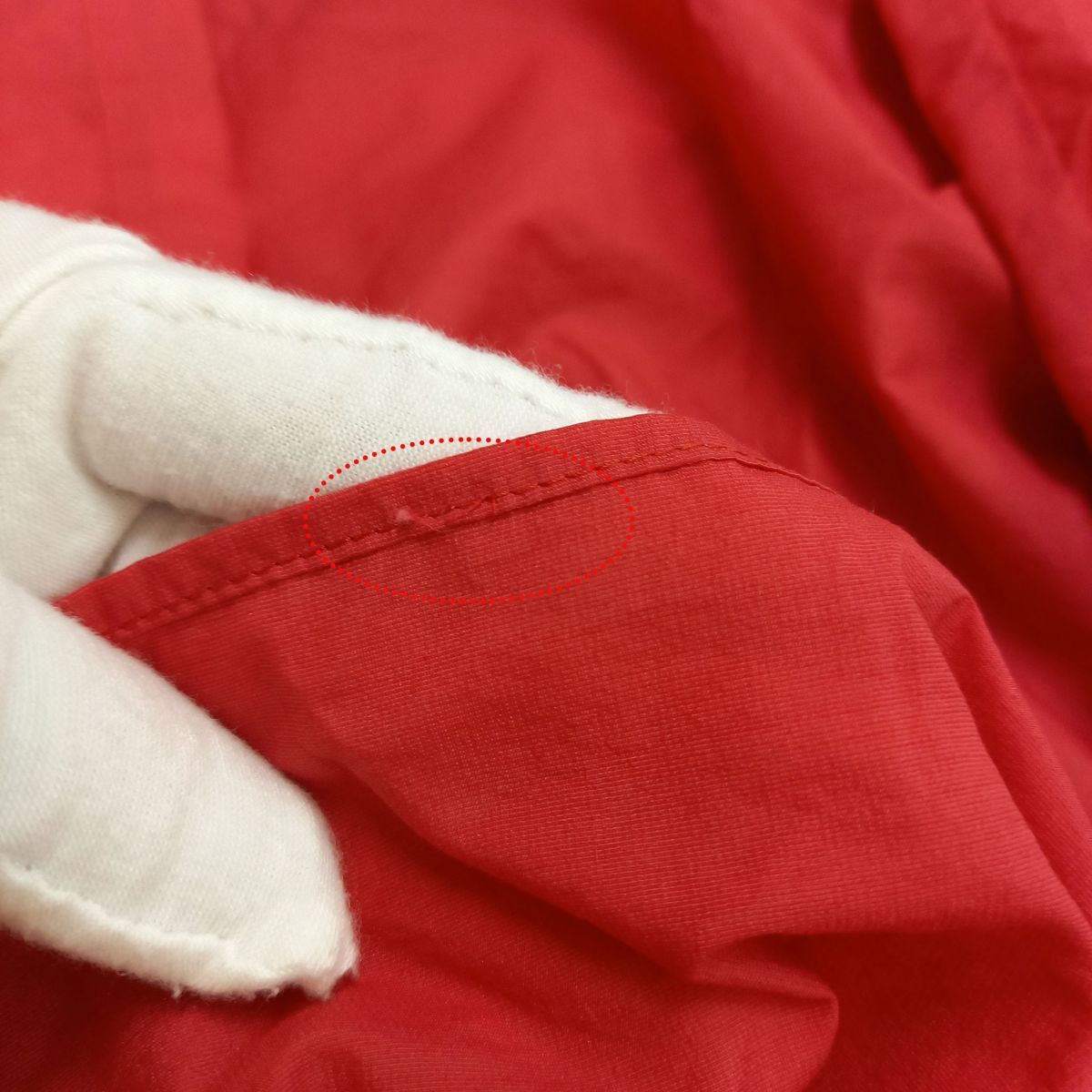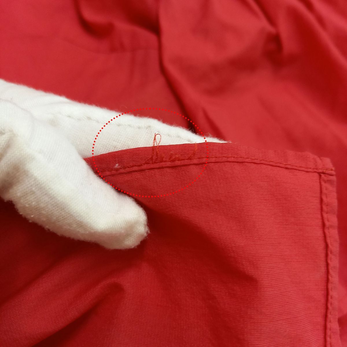 後ろ身頃の左肩下辺りにちいさなほつれがあり、裾の裏の縫い目にほつれがあります。