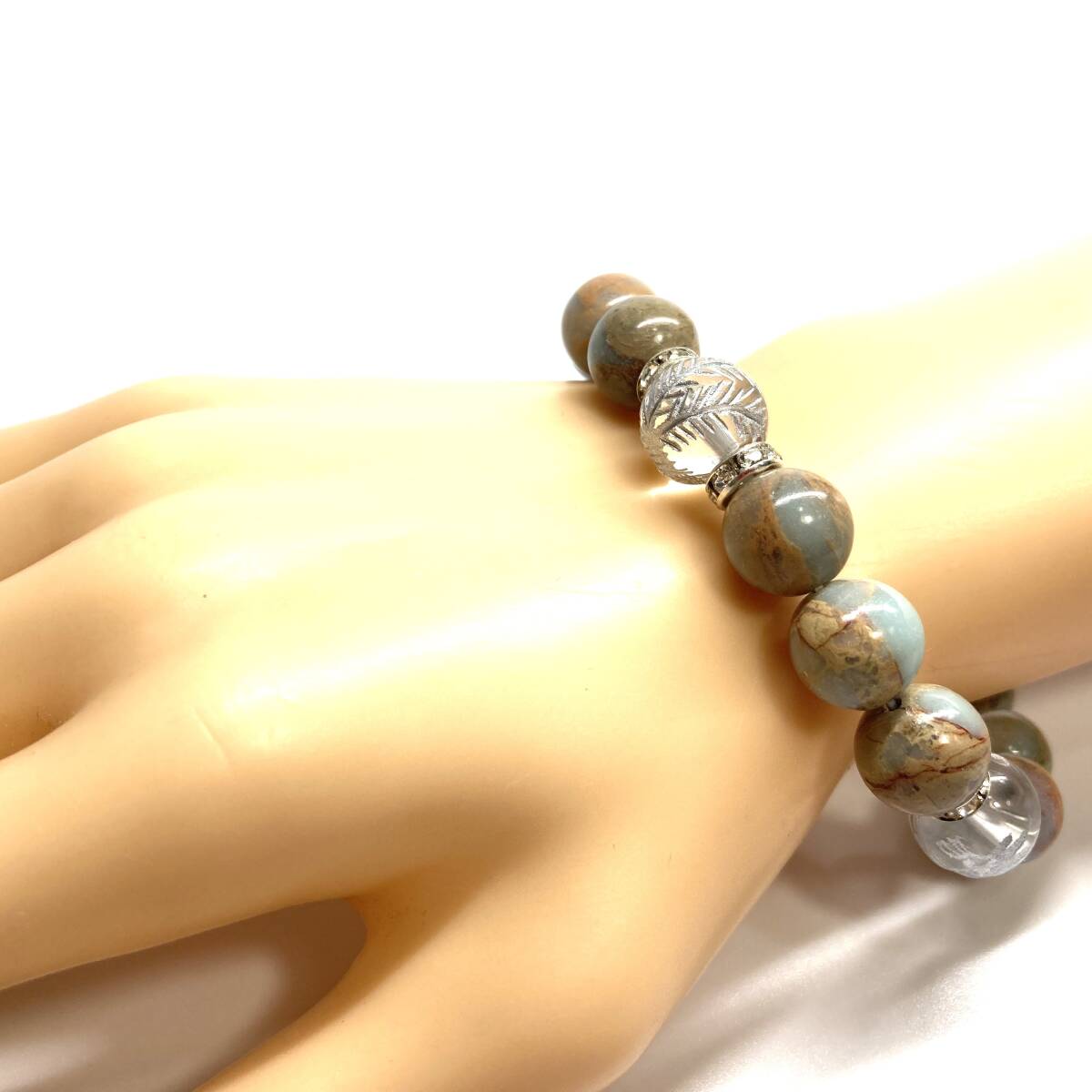 四神獣銀彫水晶×インプレッションストーン 12mm パワーストーン ブレスレット天然石 青龍 白虎 玄武 朱雀 運気上昇 お守り 四神相応 S