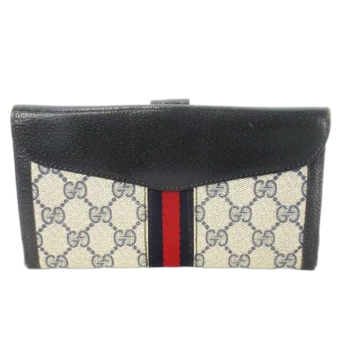 グッチ GUCCI オールドグッチ GGスプリーム 長財布 ロング ウォレット シェリーライン インターロッキング レザー PVC 青