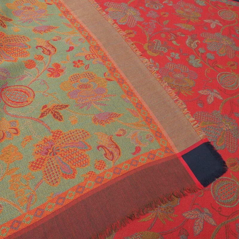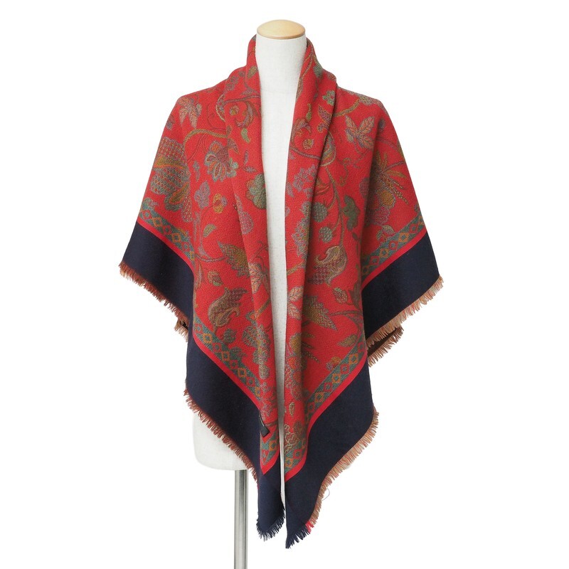 | TJ7982*valentino garavani ヴァレンティノガラヴァーニ vintage 大判ジャガードストール スカーフ ボタニカル柄 レッド系 | |||
