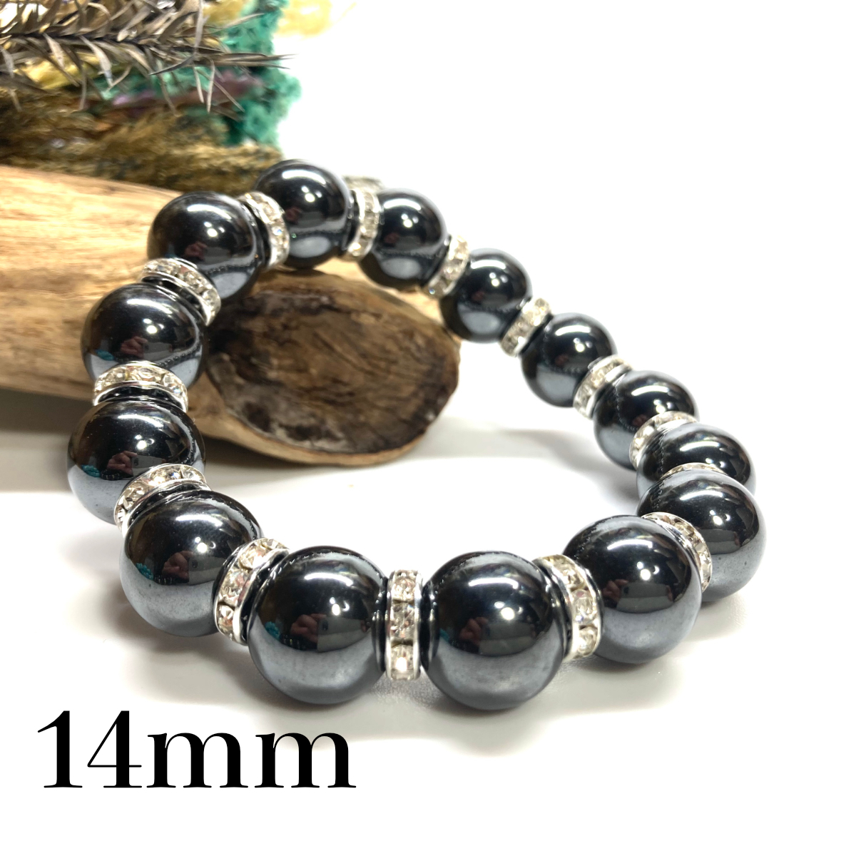 こちらは、14mm玉のヘマタイトを使用した天然石ブレスレットです。石との間にはロンデルを挟み高級感を演出しています。シンプルなデザインですのでどんなコーディネートとも合わせ易いブレスレットです。石大きさは14mm玉です。内周約17cmです。パワーストーンを付けてる方へのプレゼントにもお勧めです。14mmサイズのリクエストが多々ありましたので少量ですが販売しました。気になる方はお早めにどうぞ。
