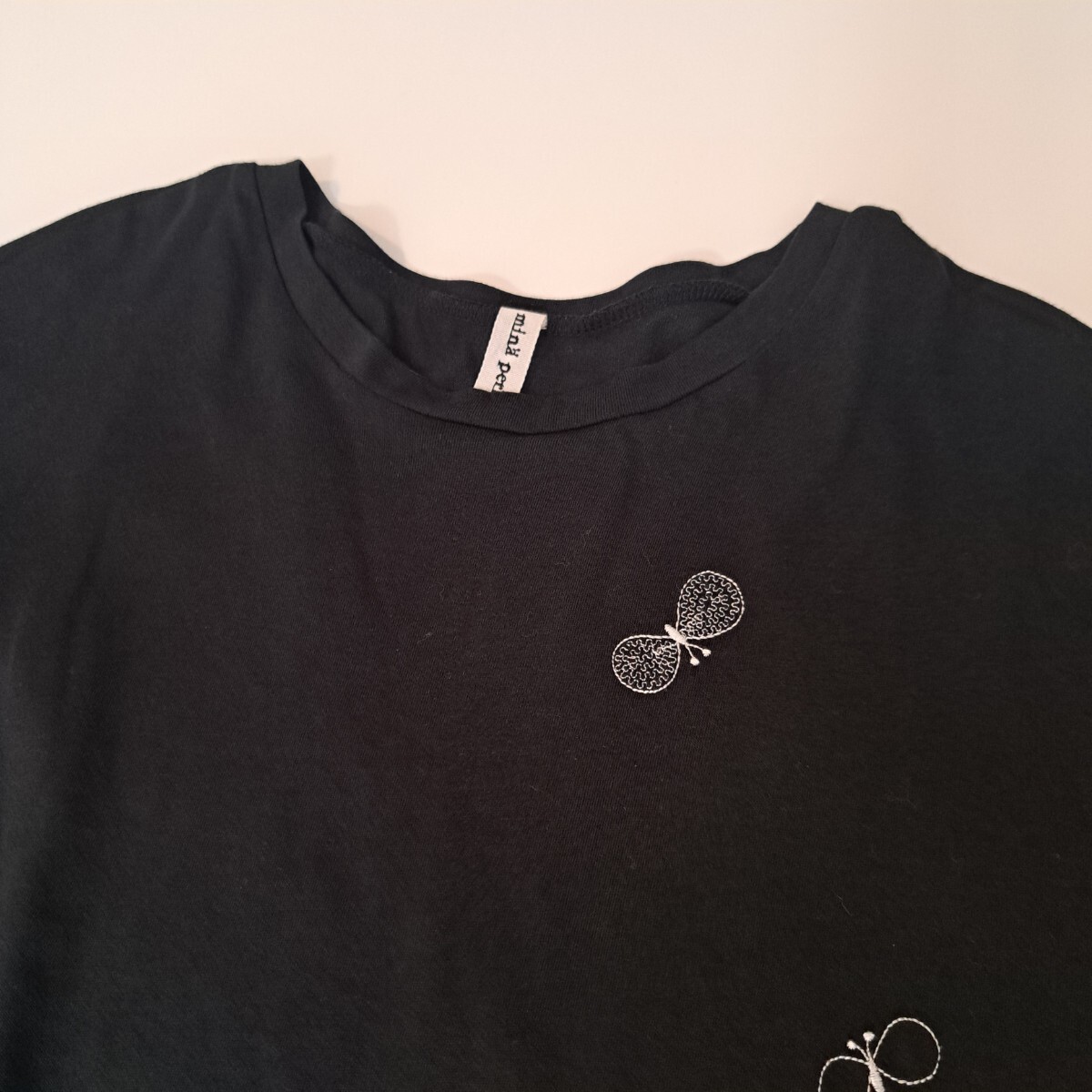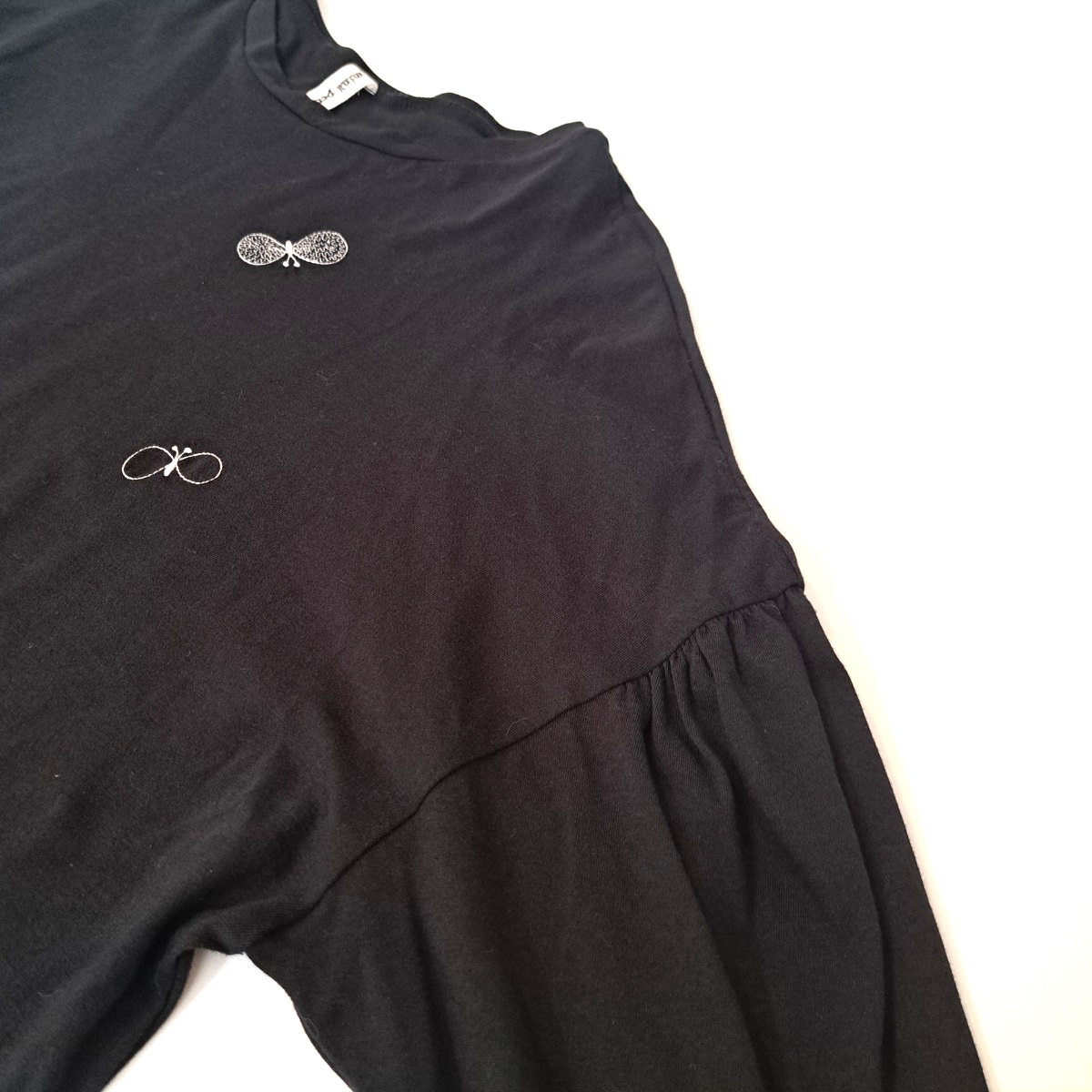 ドロップショルダーで切り替えにギャザーがはいっています。