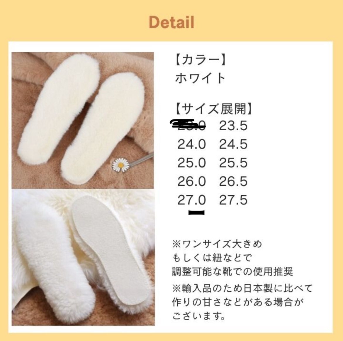 天然100%羊毛ウールインソールムートンインソール防寒用あったかグッズ中敷き37 (2足、23.5cm)