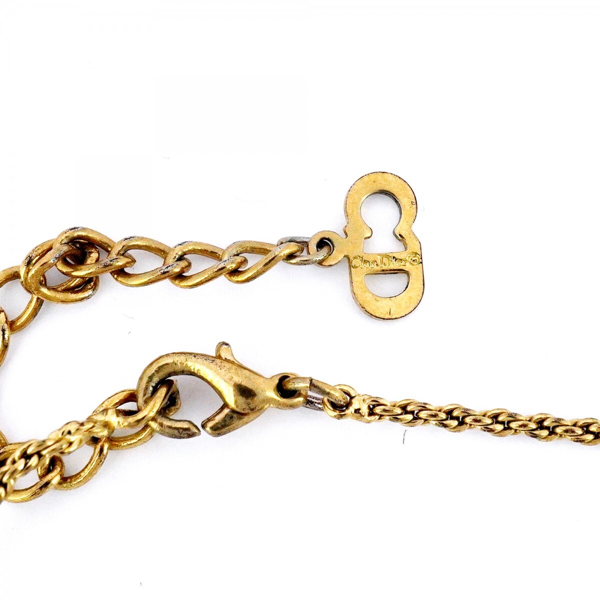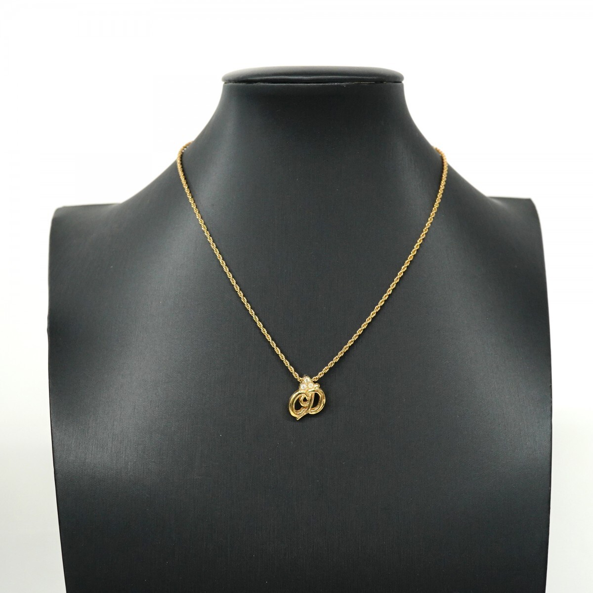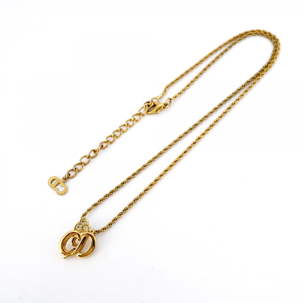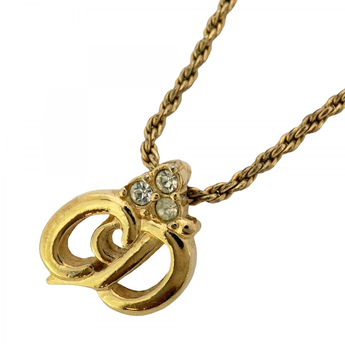 【5jpb0124】クリスチャンディオール ネックレス CDロゴ GPメッキ ラインストーン ゴールド【中古】レディース