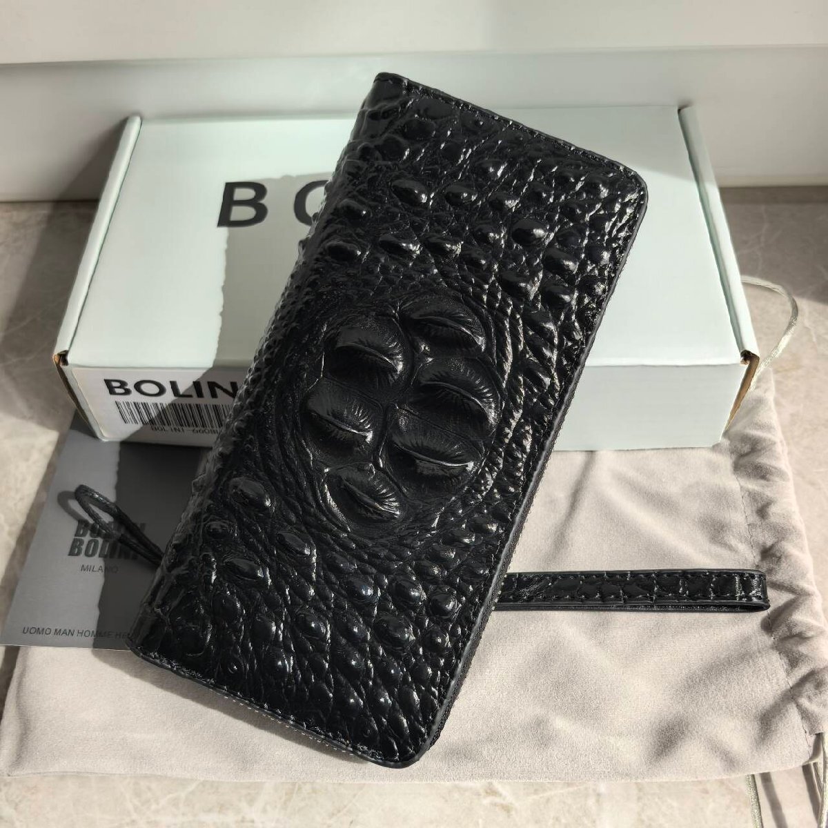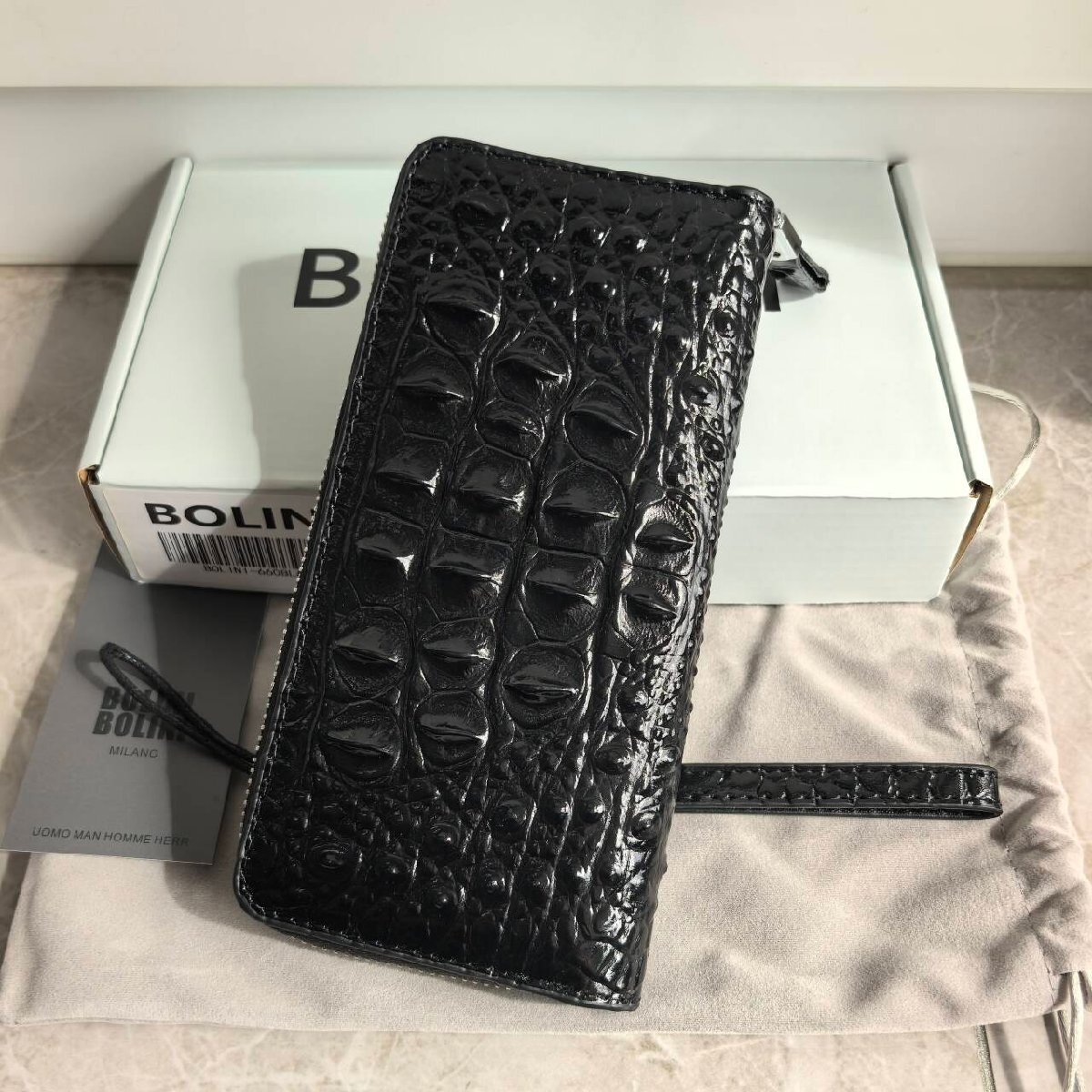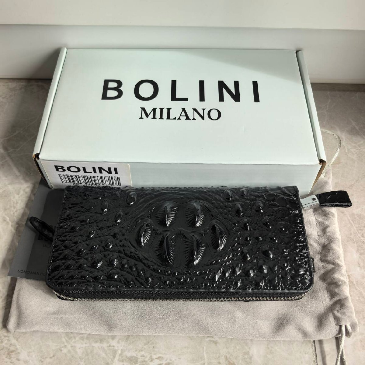 新品未使用 BOLINIボリーニ 牛革 クロコダイル型押し クロコダイル ラウンド ファスナー 長財布 black