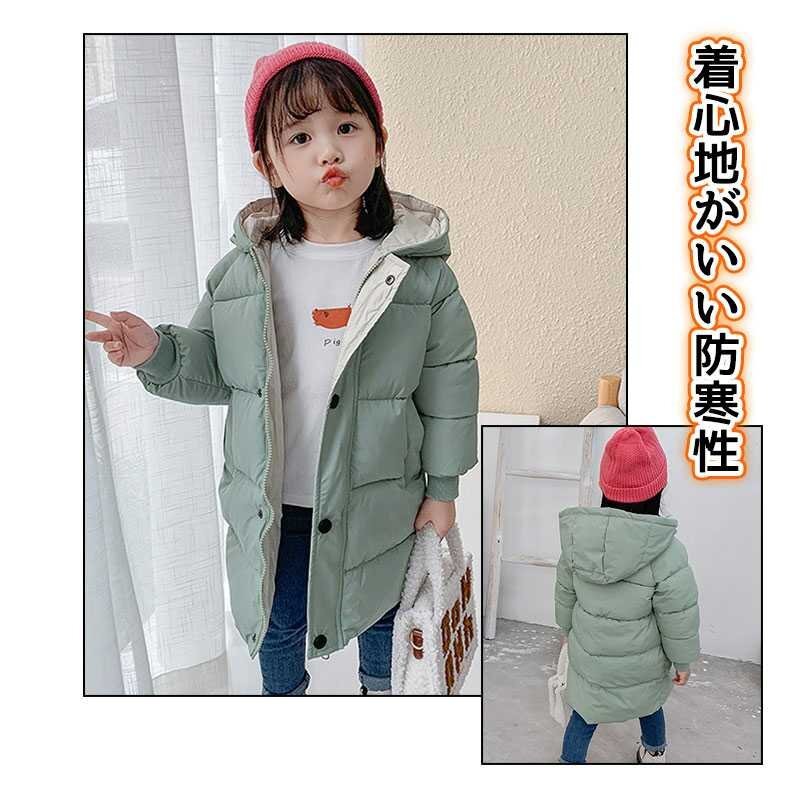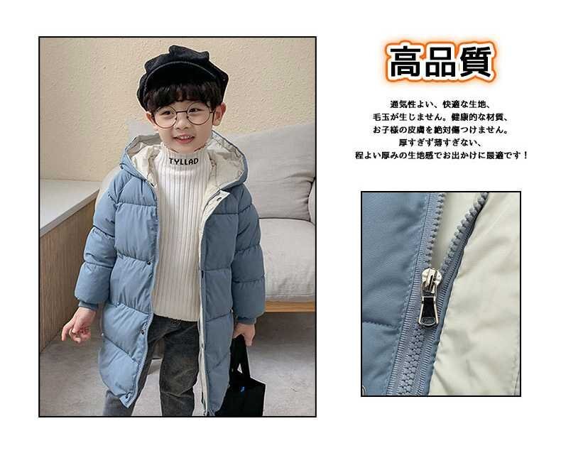 子供 綿入れ女の子ジャケット ダウンジャケット 男の子コート フード付きロング丈 保温 キッズアウター防寒防風☆9色/100~150選択/1点
