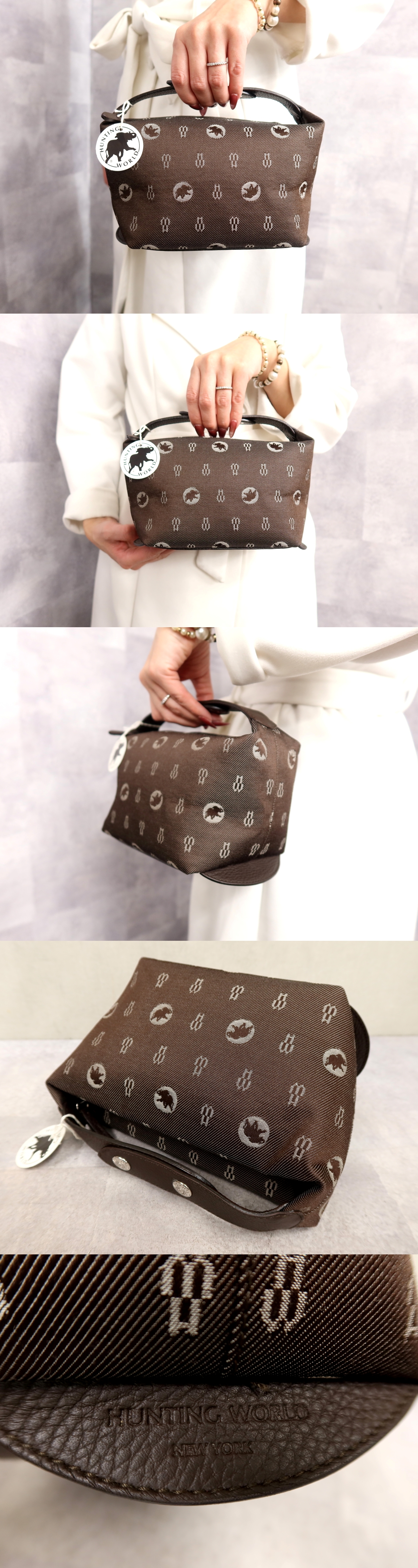 ●未使用●HUNTING WORLD ハンティング・ワールド●キャンバス カーフ レザー 本革●ミニ ハンド バッグ●ダークブラウン●SV金具●Js63169