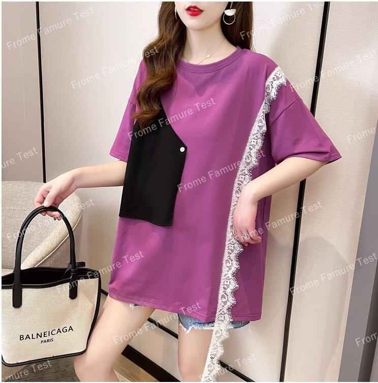 半袖Tシャツ ロング丈 韓国ファッション レディース 2XL ブルー