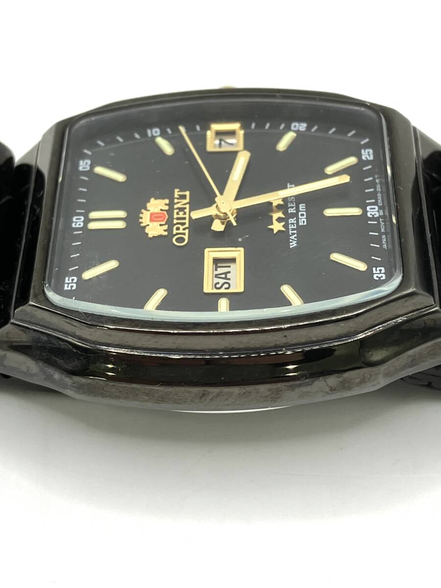 ・[15524]現状稼働品 ORIENT EMAS-D2 オリエント スリースター 自動巻き 黒文字盤 腕時計