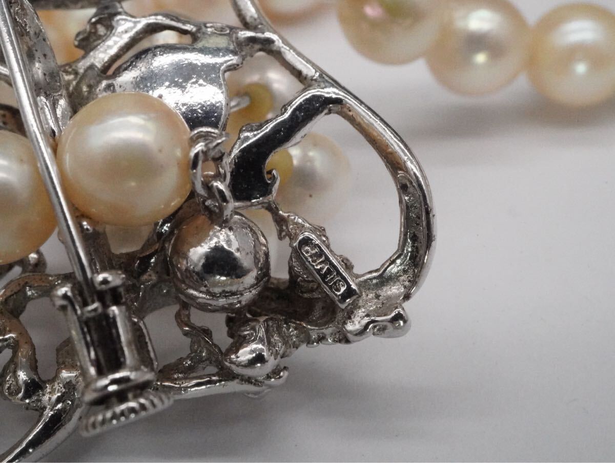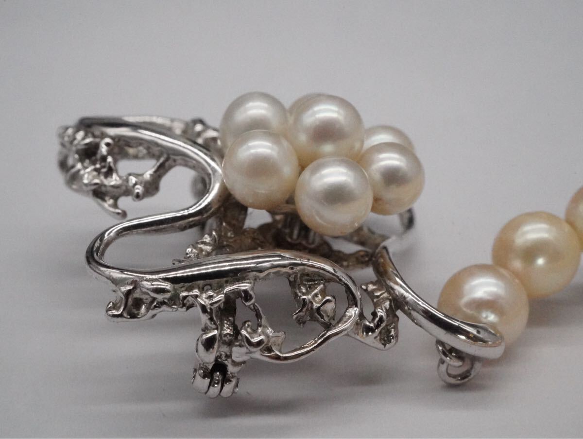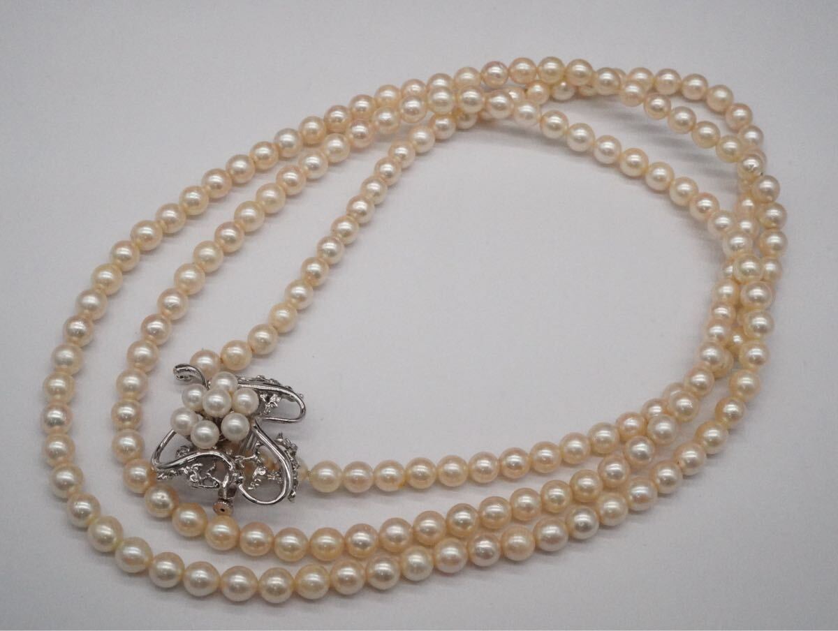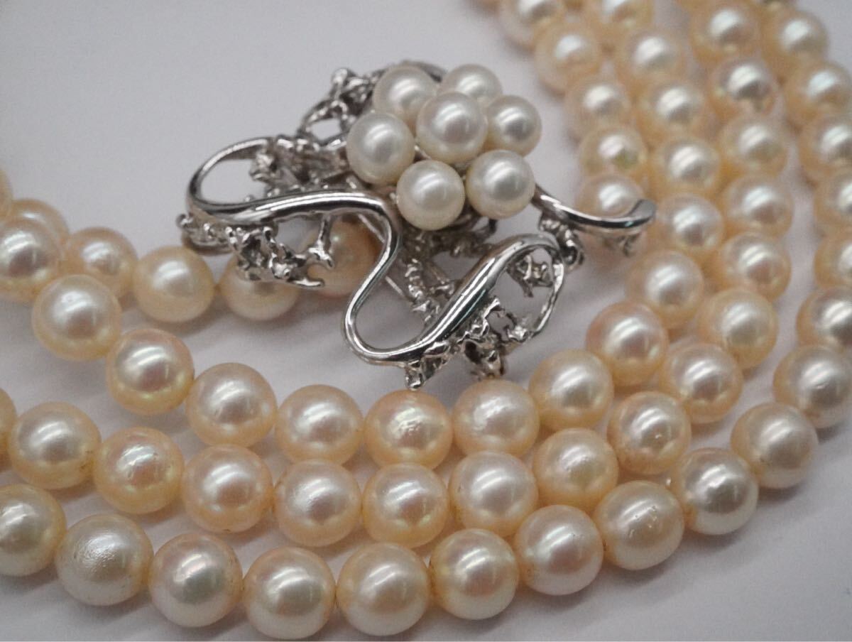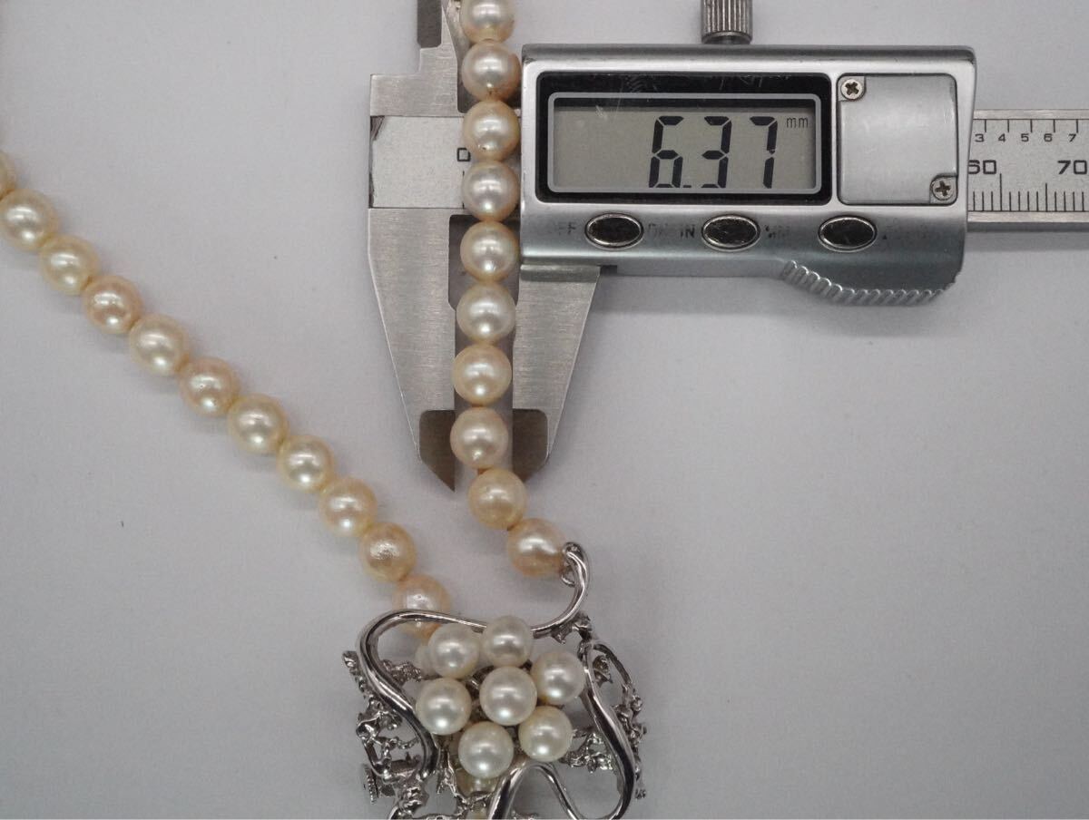 【349】本真珠 パール SILVER シルバー 留め具 クリップ式 ロング ネックレス 長さ約120cm アクセサリー TIA