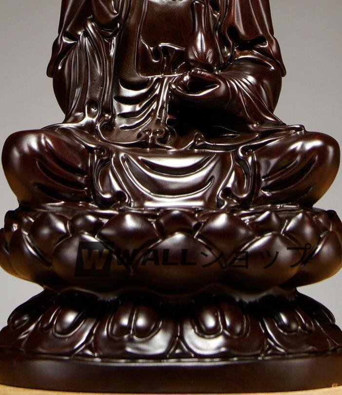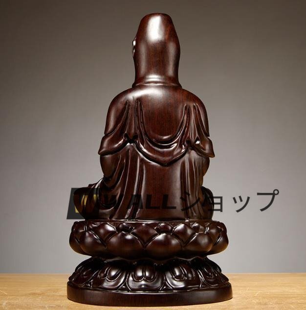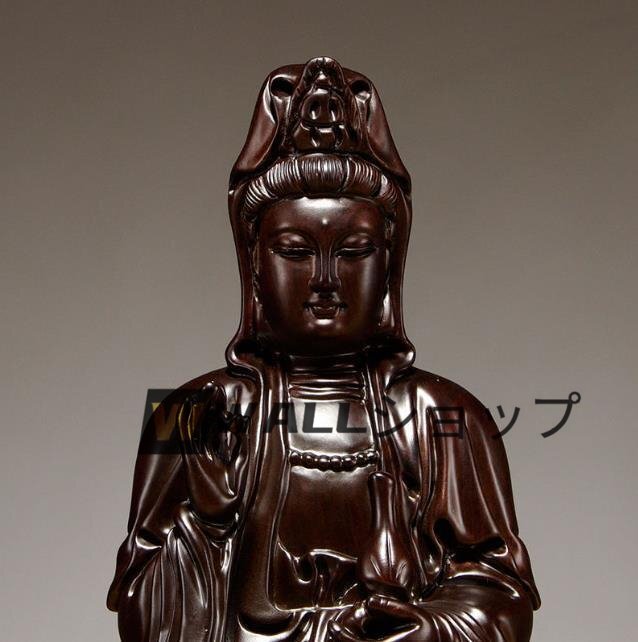 極上品 爆売り 仏教美術 木彫り 黒檀木 観音菩薩座像 仏像 精密細工 置物