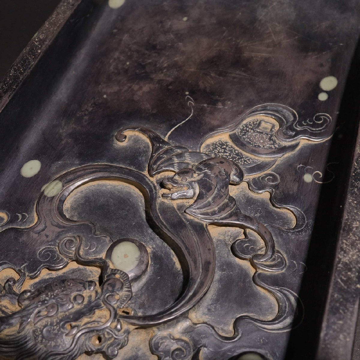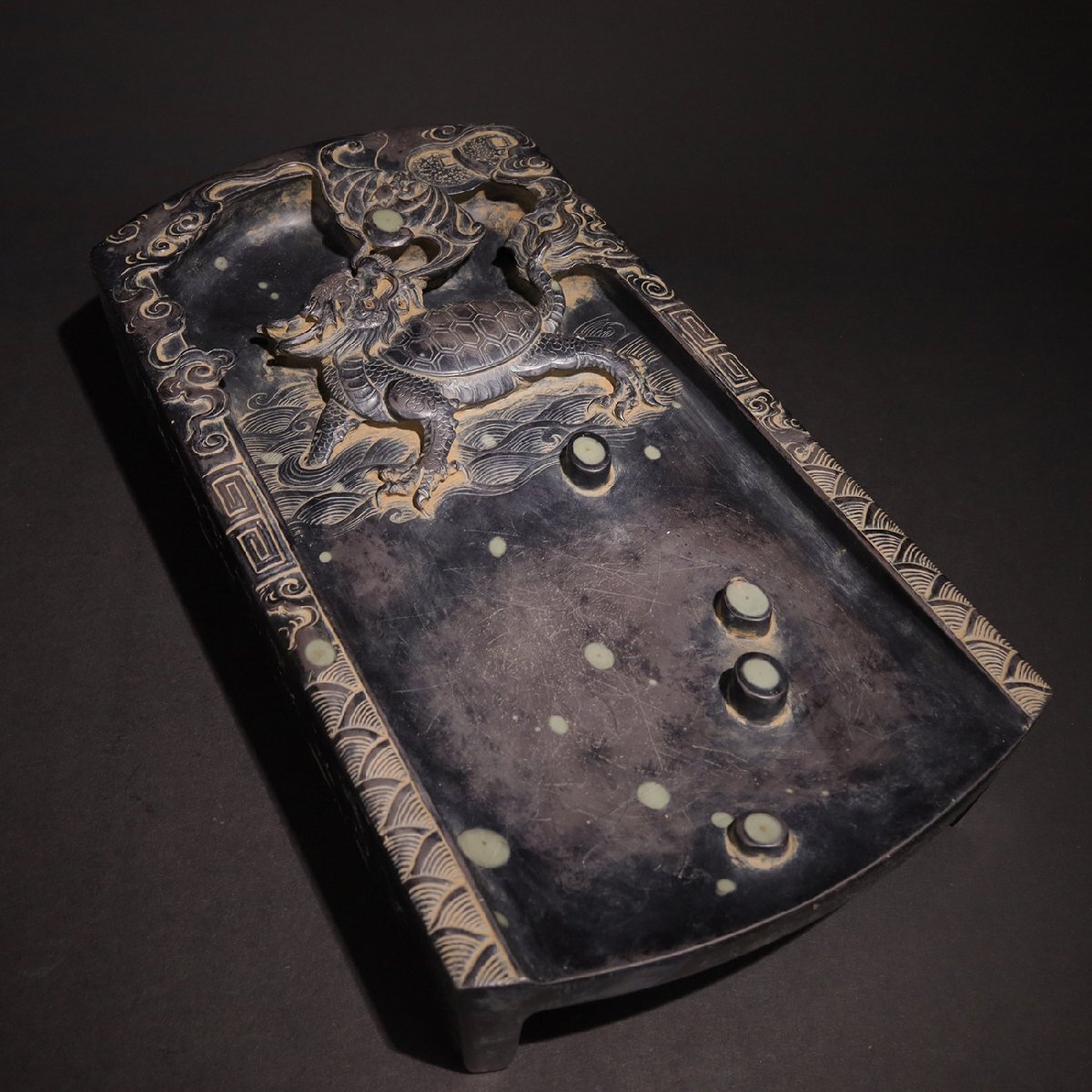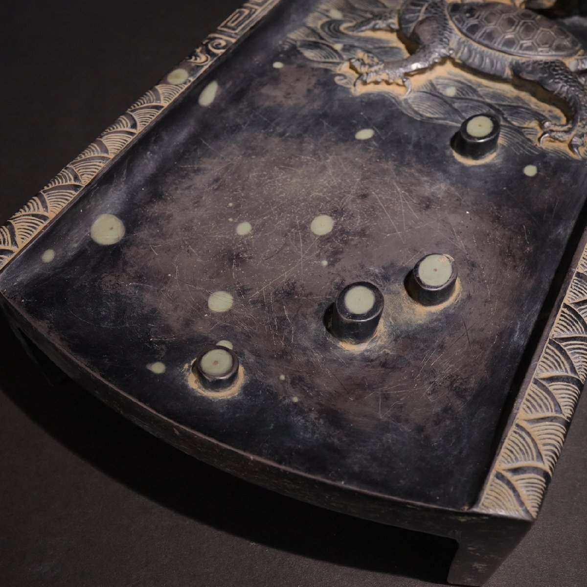 【安】清時代 計楠銘 端石彫 麟亀銜福紋風字形硯 抄手硯 書道具 文房具 極細工 中国古美術 時代物 古董品 257 サイズ(約寸) |