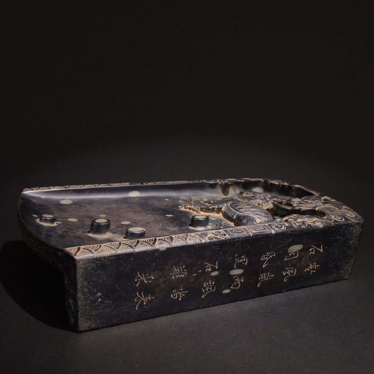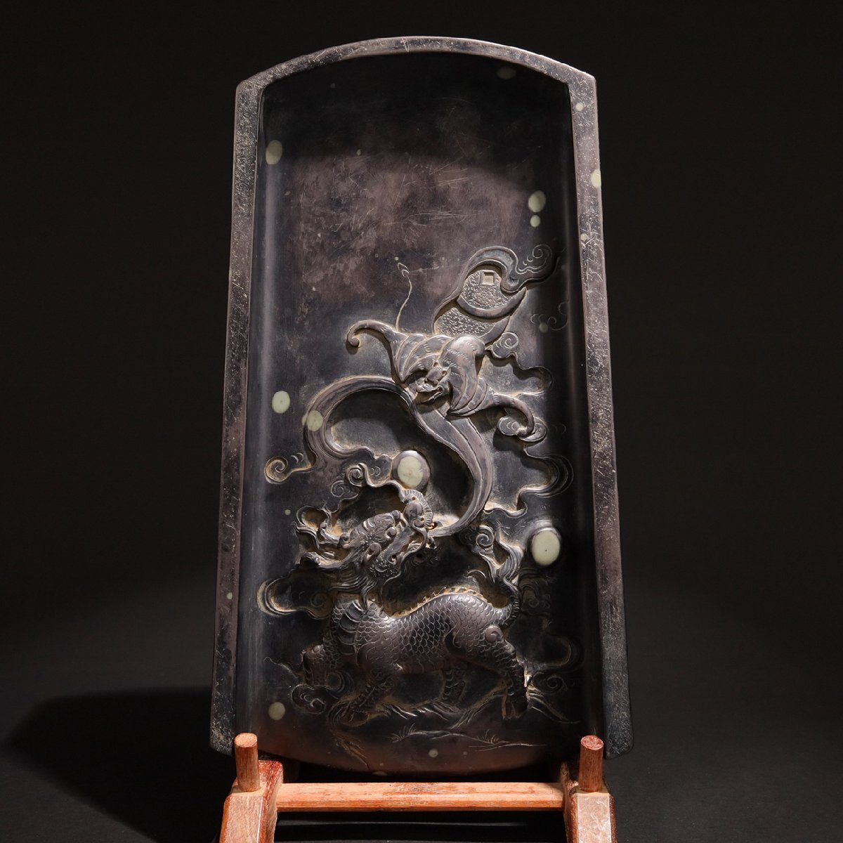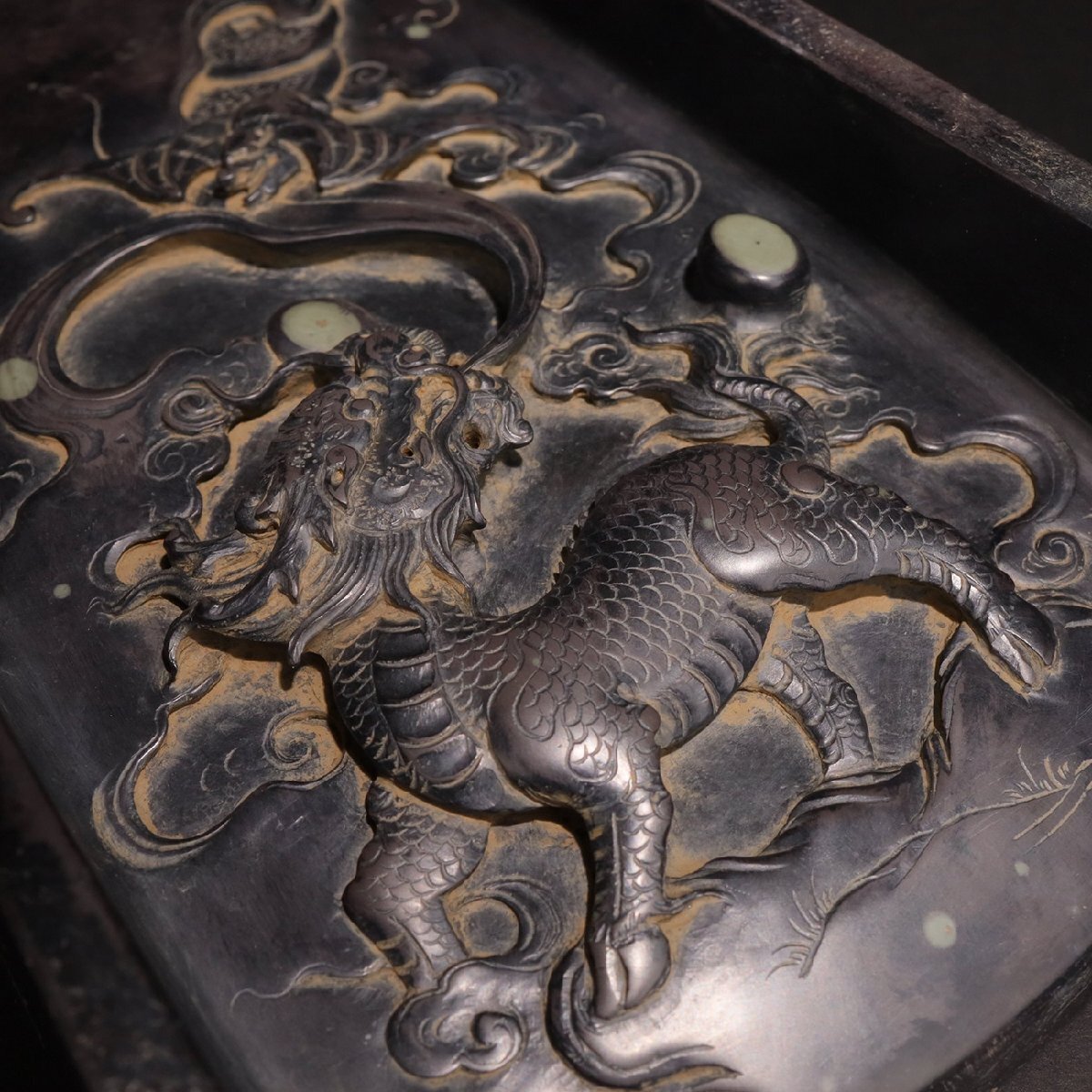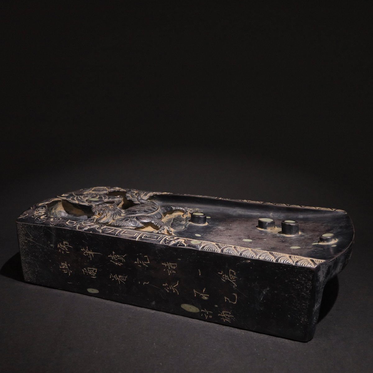 【安】清時代 計楠銘 端石彫 麟亀銜福紋風字形硯 抄手硯 書道具 文房具 極細工 中国古美術 時代物 古董品 257 サイズ(約寸) |