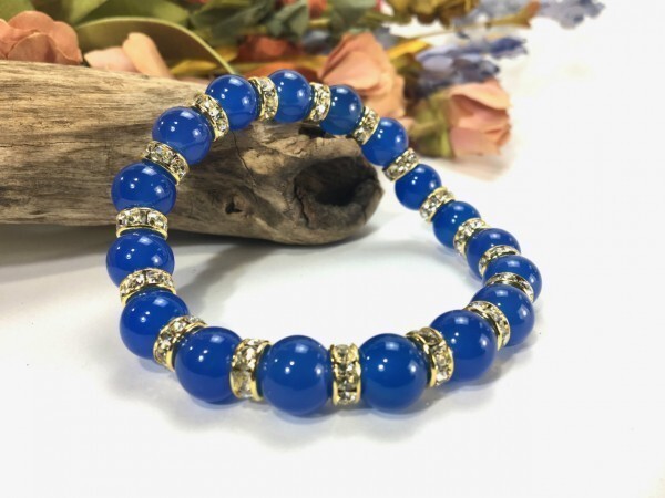 こちらは、10mm玉のブルーメノウを使用したパワーストーンブレスレットです。間にはロンデルを挟み高級感あるブレスレットに仕上げています。石大きさは腕にも馴染みやすいように10mm玉を使用して、サイズは内径約18cmです。(サイズ調節も無料で承っています。サイズ変更の場合は落札後、取引ナビにてご一報くださいませ。) 数に限りがございますので気になる方はお早めにどうぞ。
