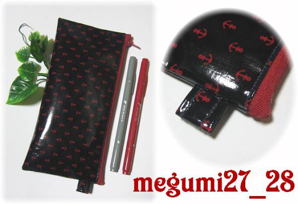 <ペンケース>イカリ柄紺×赤★ラミネート加工★ハンドメイド