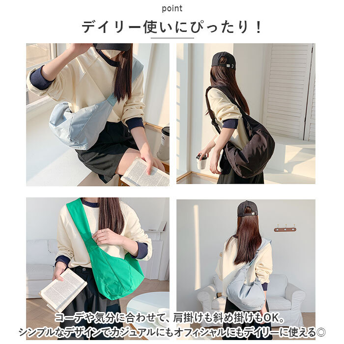 | 商品説明 | ・・シンプルなデザインのショルダーバッグが登場。 ・【ファスナー開口】 ・中身がこぼれ落ちることなく、プライバシーを確保。 ・またどちらからでも開けられるダブルファスナータイプ。 ・【ちょうどいいサイズ感】 ・長財布も500mlペットボトルも!お出かけの必需品がひとまとめ。 ・【小物の整理も♪】 ・鍵や貴重品が迷子にならない!便利な内ポケット付き。 ・【デイリー使いにぴったり!】 ・コーデや気分に合わせて、肩掛けも斜め掛けもOK。シンプルなデザインでカジュアルにもオフィシャルにもデイリーに使える◎ ・【身体にかかる負担を軽減】 ・ショルダー部分は太めでバッグ本体と同じナイロン素材。肩が痛くなりにくいのもポイント。 ・【ポケット仕様】 ・メインルーム:ファスナーポケット×1、オープンポケット×2 |