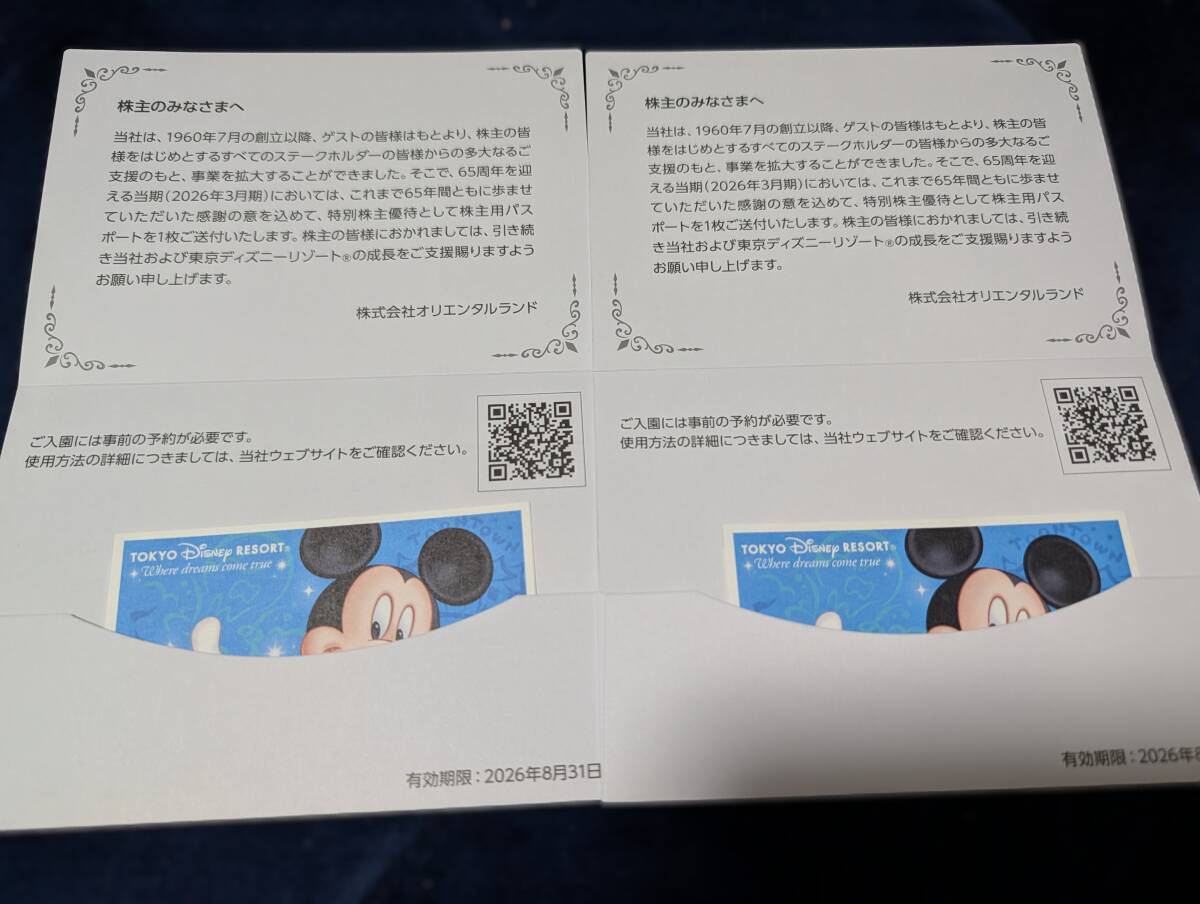 オリエンタルランド 2枚セット 株主優待 パスポート 東京ディズニーランド 東京ディズニーシー 即決 匿名配送無料