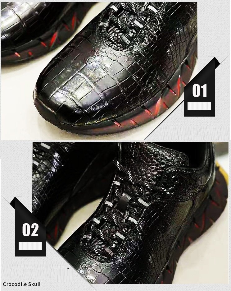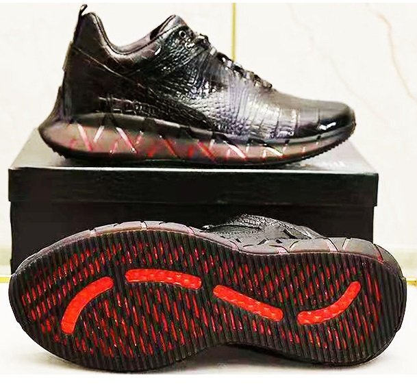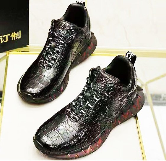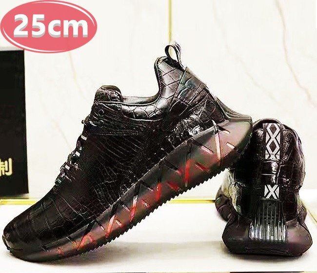 クロコダイルレザー スニーカー 最高級 ワニ革 クロコダイル 靴 メンズシューズ 革靴 ブラック 25.0cm 【n793】