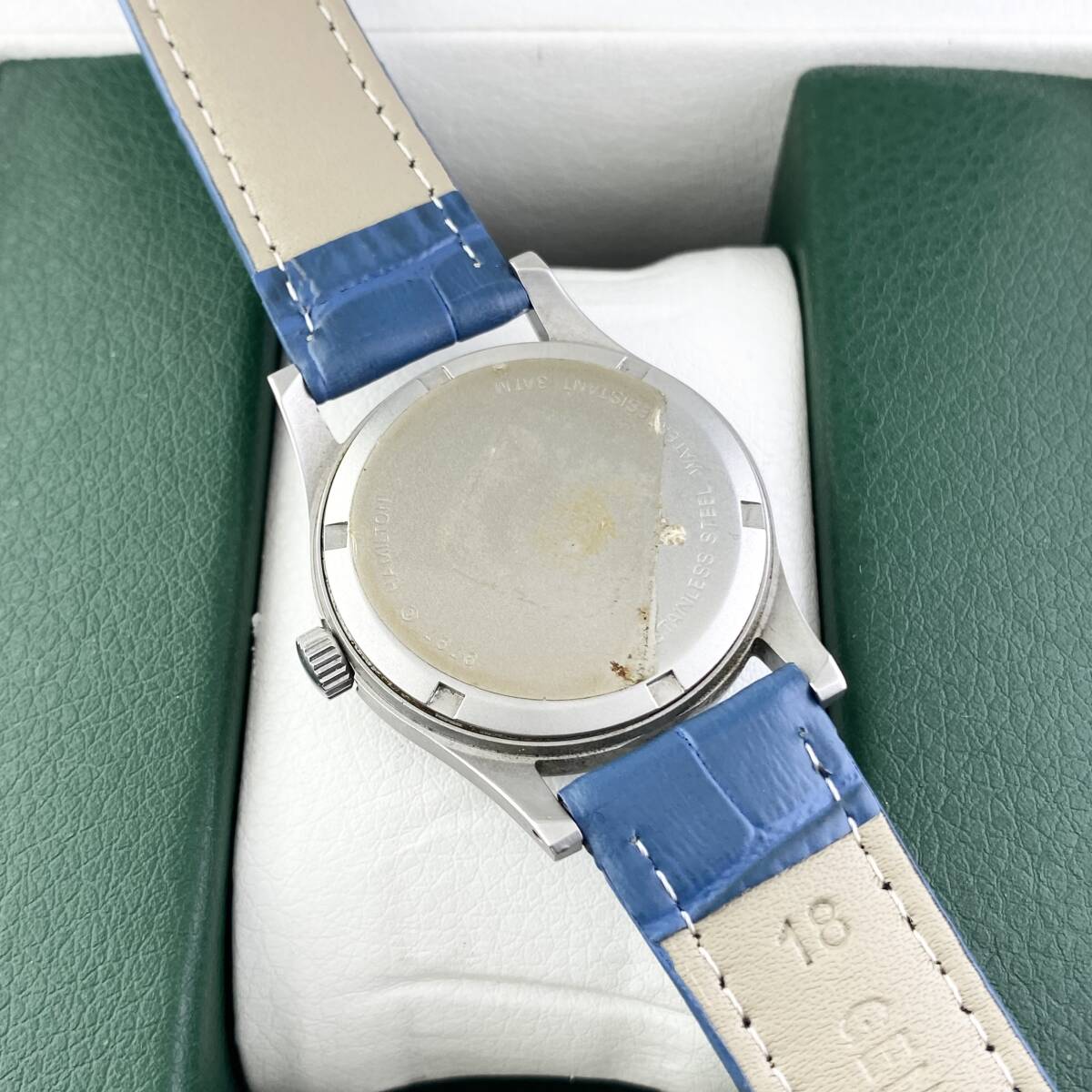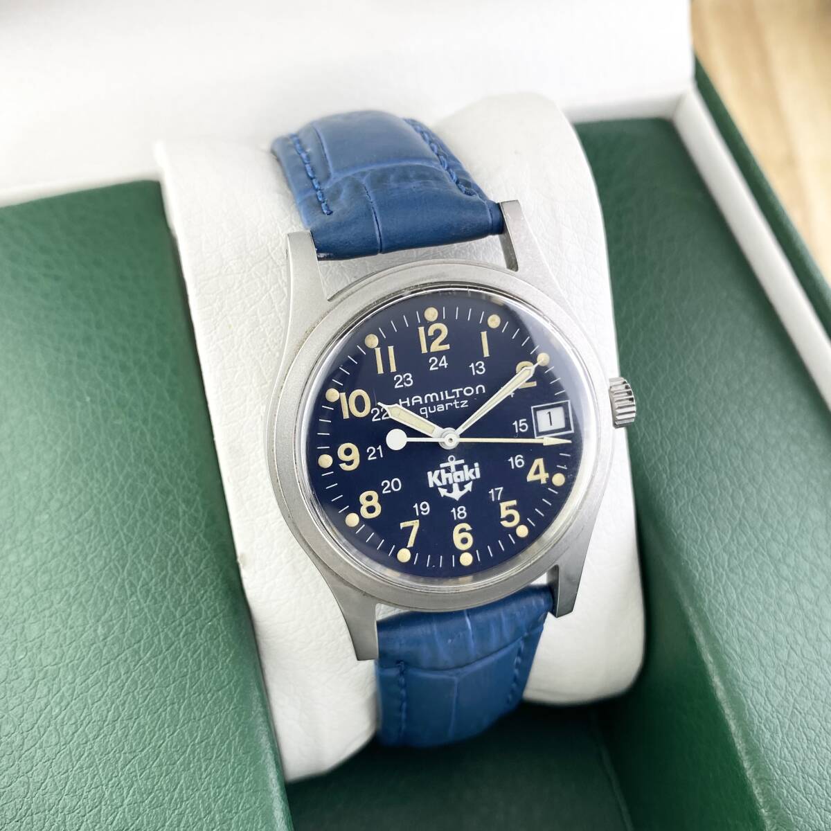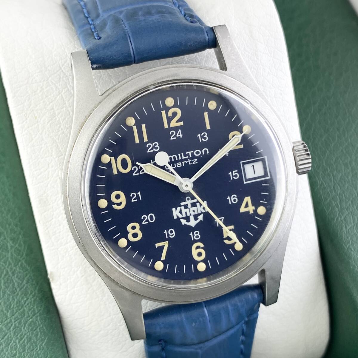 【1円〜】HAMILTON ハミルトン 腕時計 メンズ KHAKI カーキ 9797 錨マーク ブルー文字盤 ラウンドフェイス デイト 可動品 | |||
