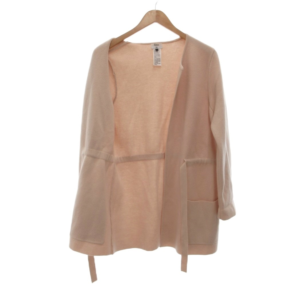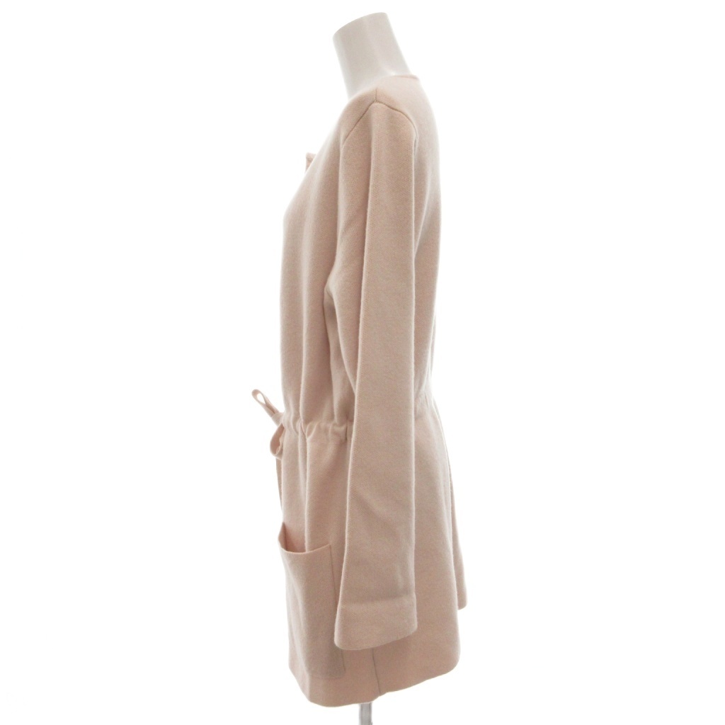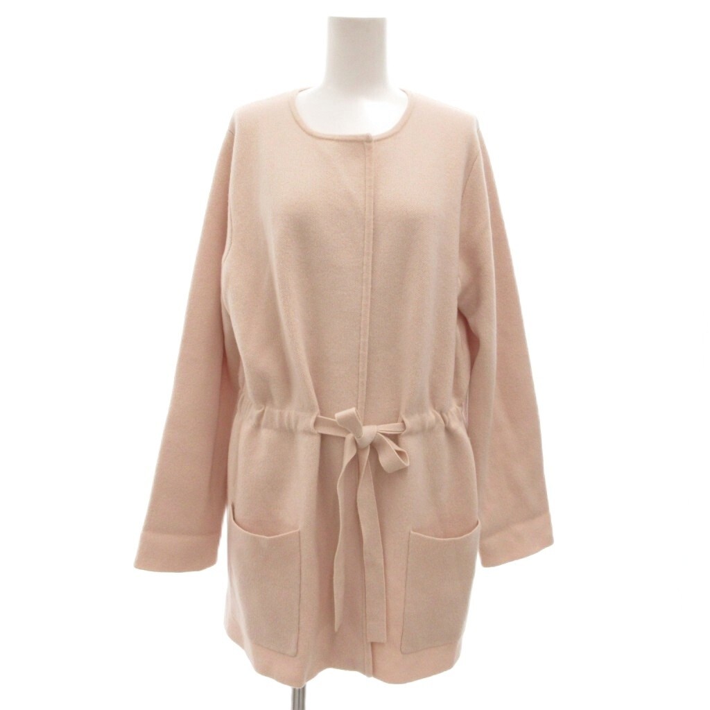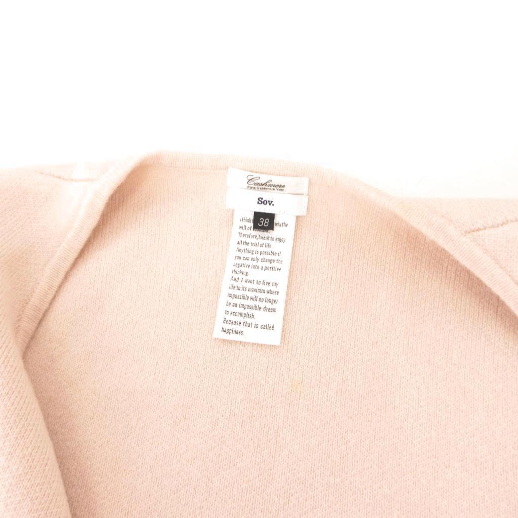 ソブ sov. ダブスタ 20AW コーディガン ニットジャケット カシミヤ 38 ピンクベージュ系 ノーカラー ドローストリング ウエストリボン