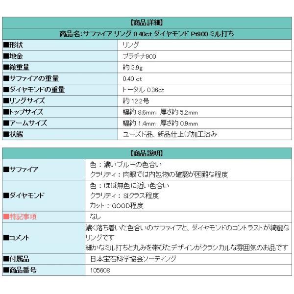 | 商品名:サファイア リング 0.40ct ダイヤモンド Pt900 ミル打ち | |