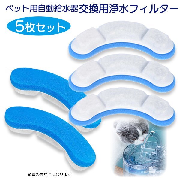 ペット用自動給水器 交換フィルター 青 5枚セット 給水器 活性炭 循環式 浄水 清潔 お得 ストック ペット 犬 猫 水飲み気ウォーター ブルー