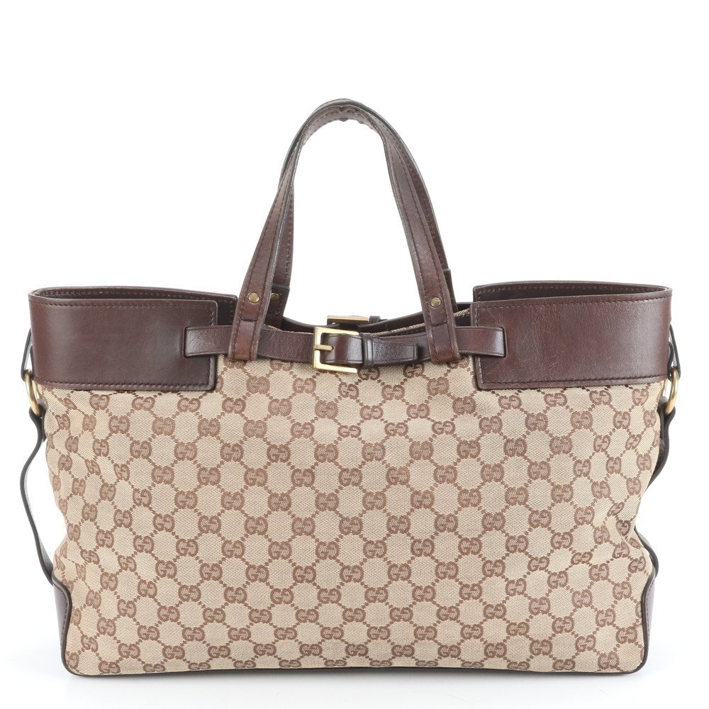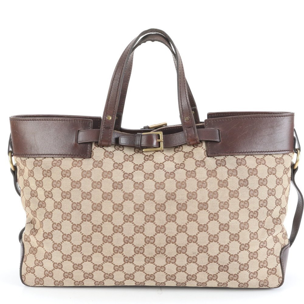 1円■極美品■グッチ■GG キャンバス 106251 レザー トート バッグ ショルダー ブラウン 茶色 ビジネス 通勤 書類鞄 A4 メンズ RUE DD34-7