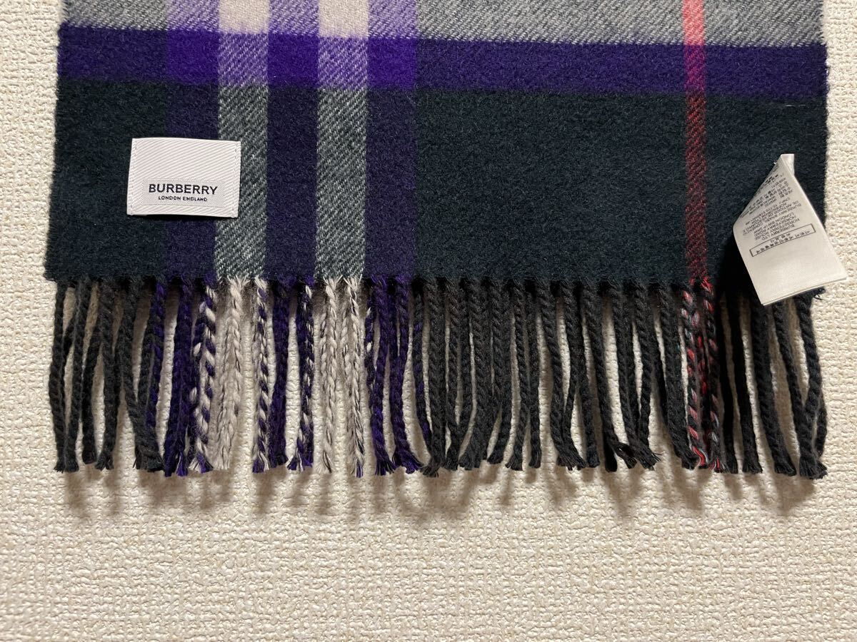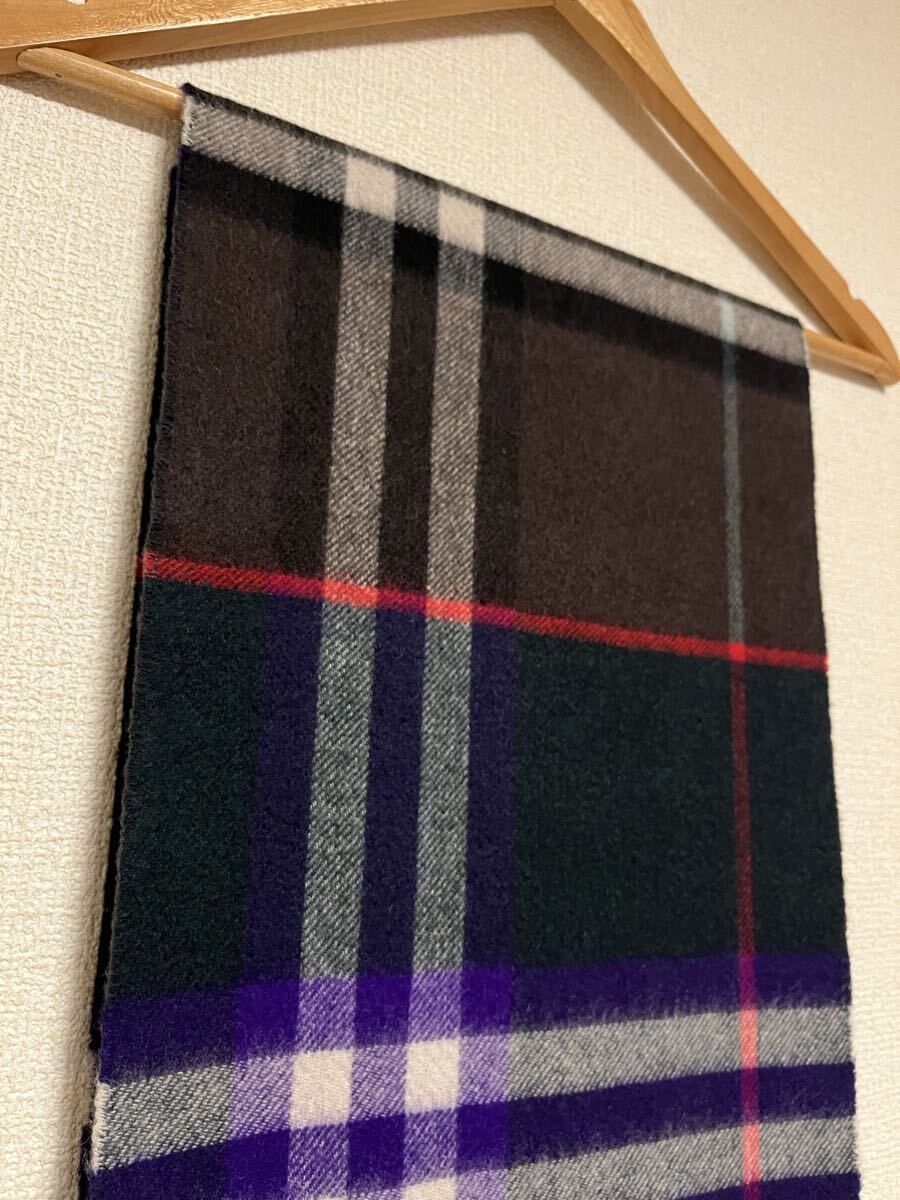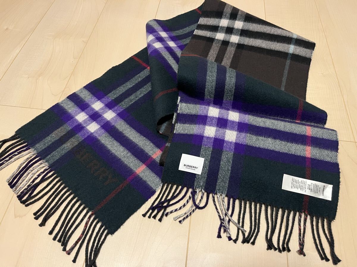 バーバリーカシミヤ100% マフラー コントラストチェック グリーンxココアのような色