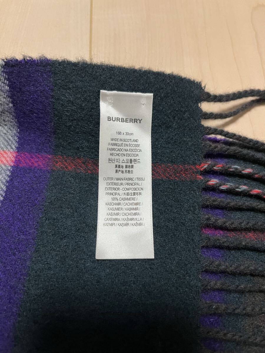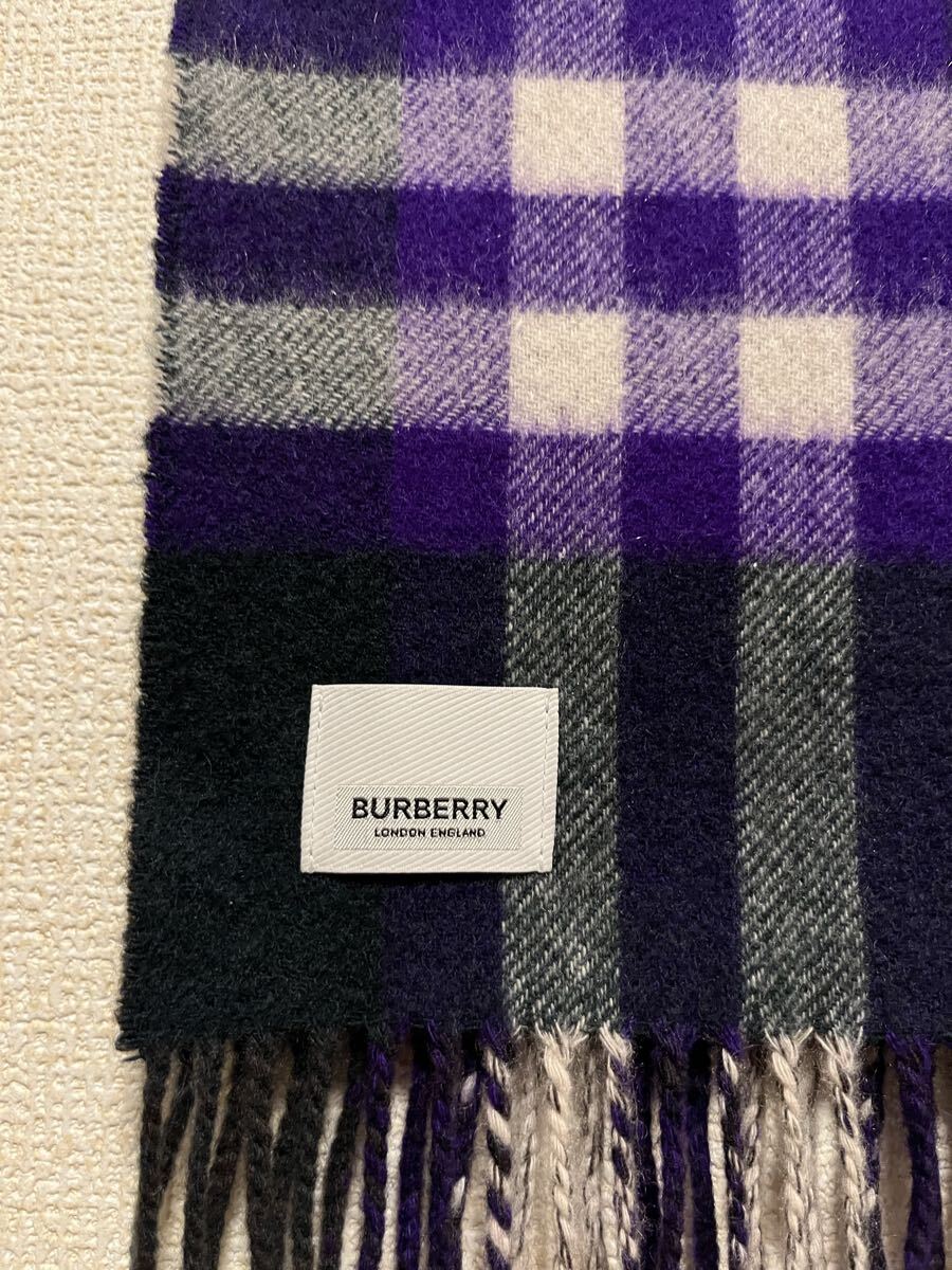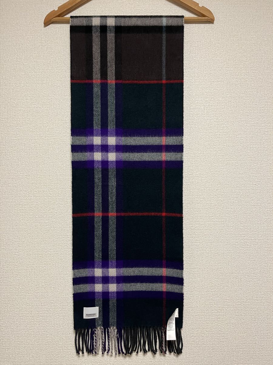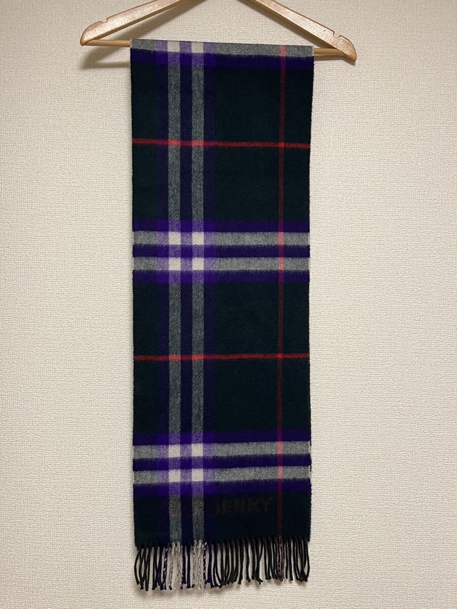 バーバリーカシミヤ100% マフラー コントラストチェック グリーンxココアのような色
