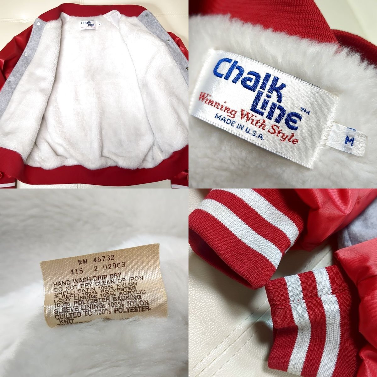 【USA製 フォーティナイナーズ チョークライン スタジャン M 裏ボア 切替 バックロゴ San Francisco 49ers Chalk Line 90s ヴィンテージ】