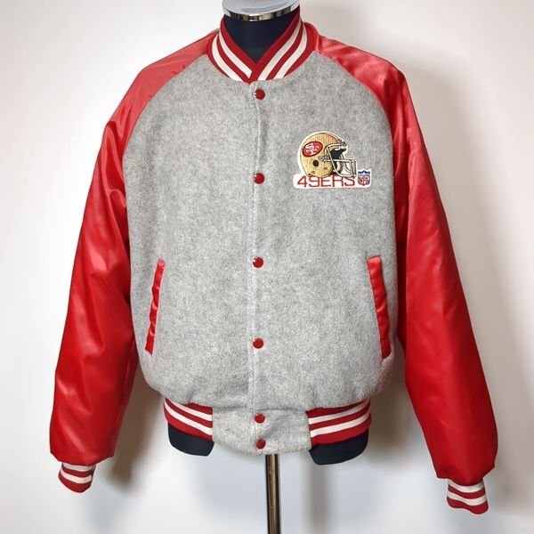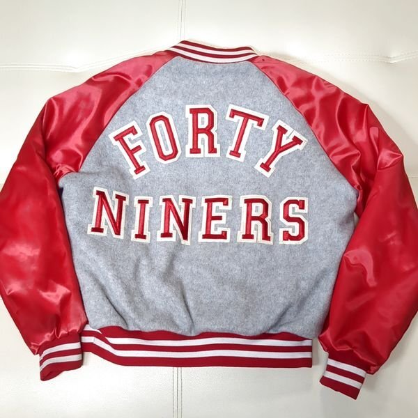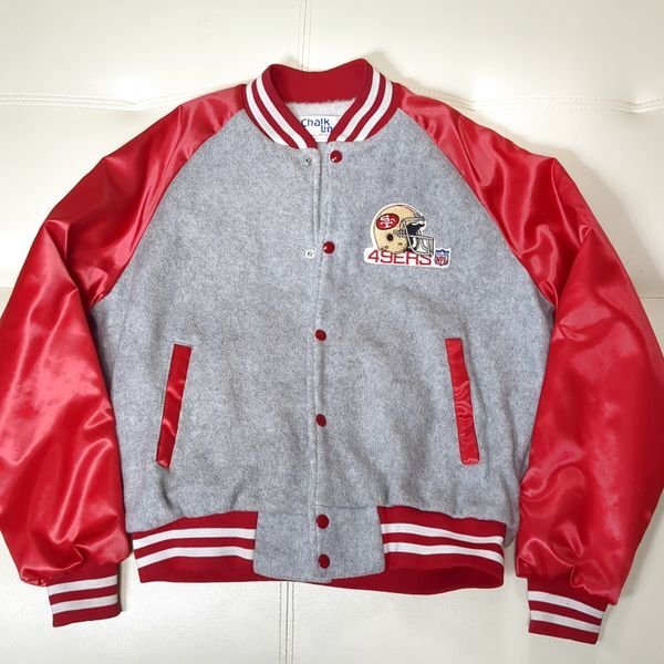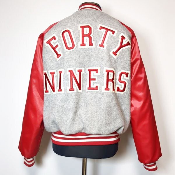 USA製 フォーティナイナーズ チョークライン スタジャン M 裏ボア 切替 バックロゴ San Francisco 49ers Chalk Line 90s ヴィンテージ