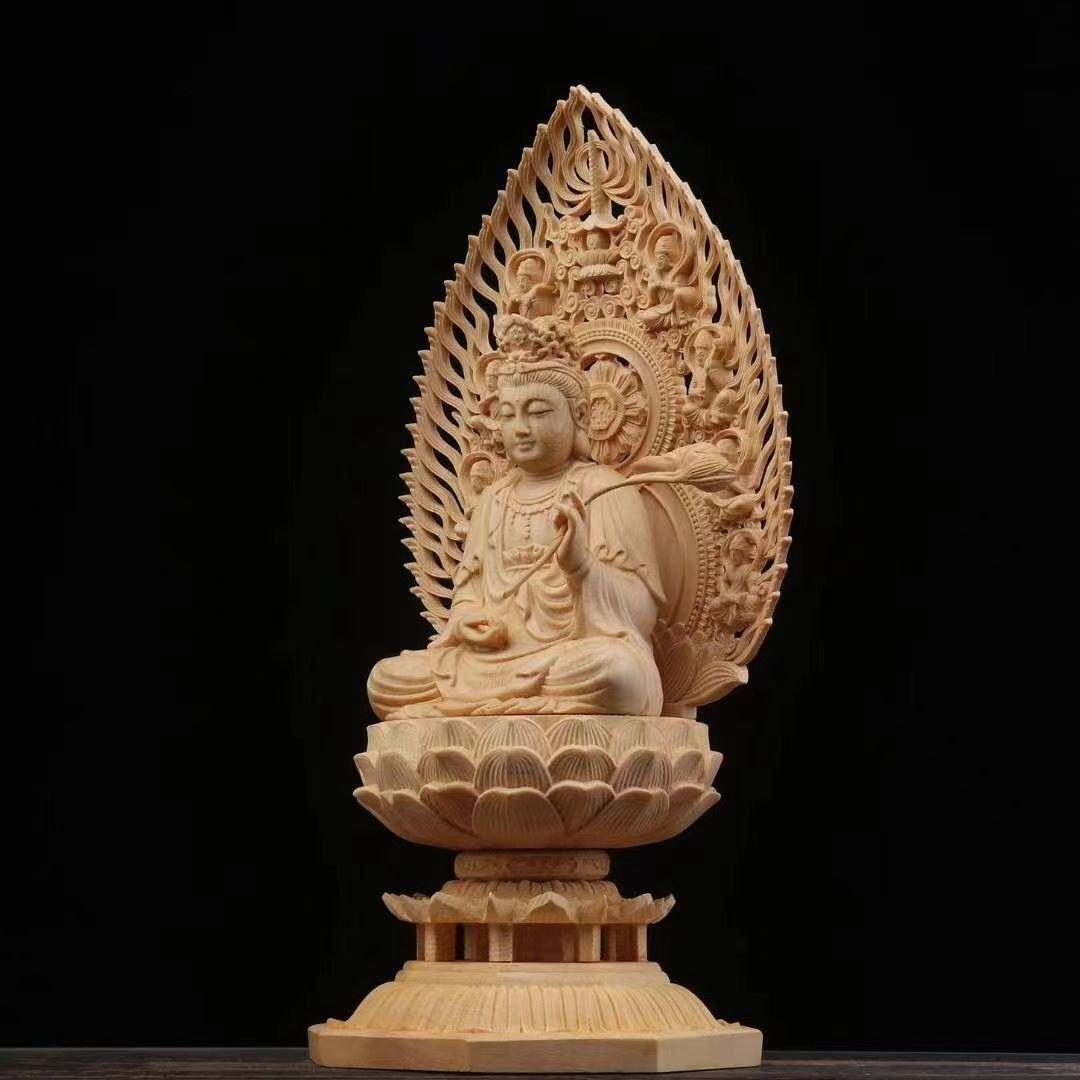 極上品★総檜材 仏教工芸品 木彫仏教 檜木 精密彫刻 仏師で仕上げ品 大勢至菩薩像 高約28cm
