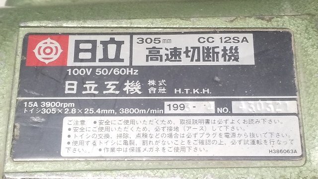 | タイトル | (1円スタート!) 高速切断機 高速カッター 2点セット MITACHI ミタチ MGC-305NZ & 日立 CC12SA 砥石付き 動作良好 B4186 |