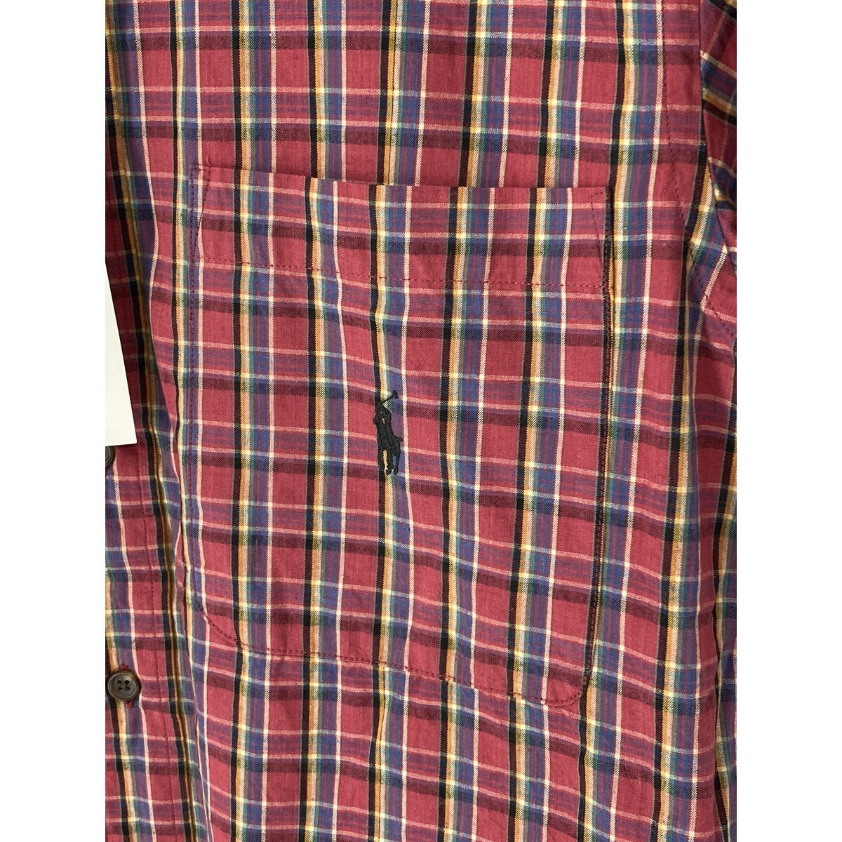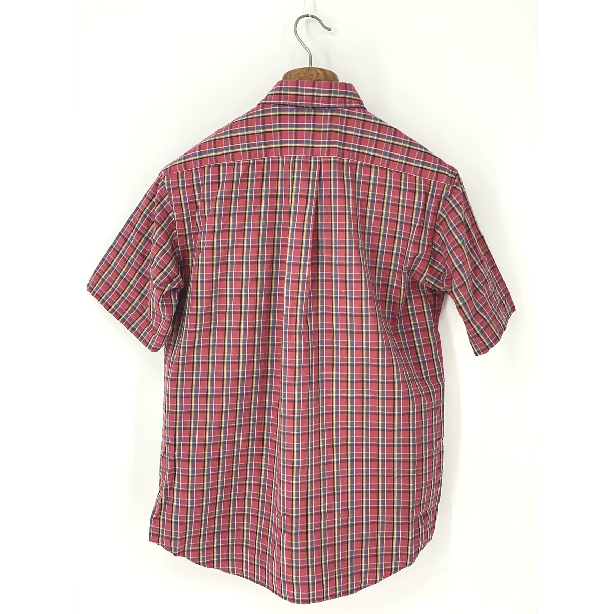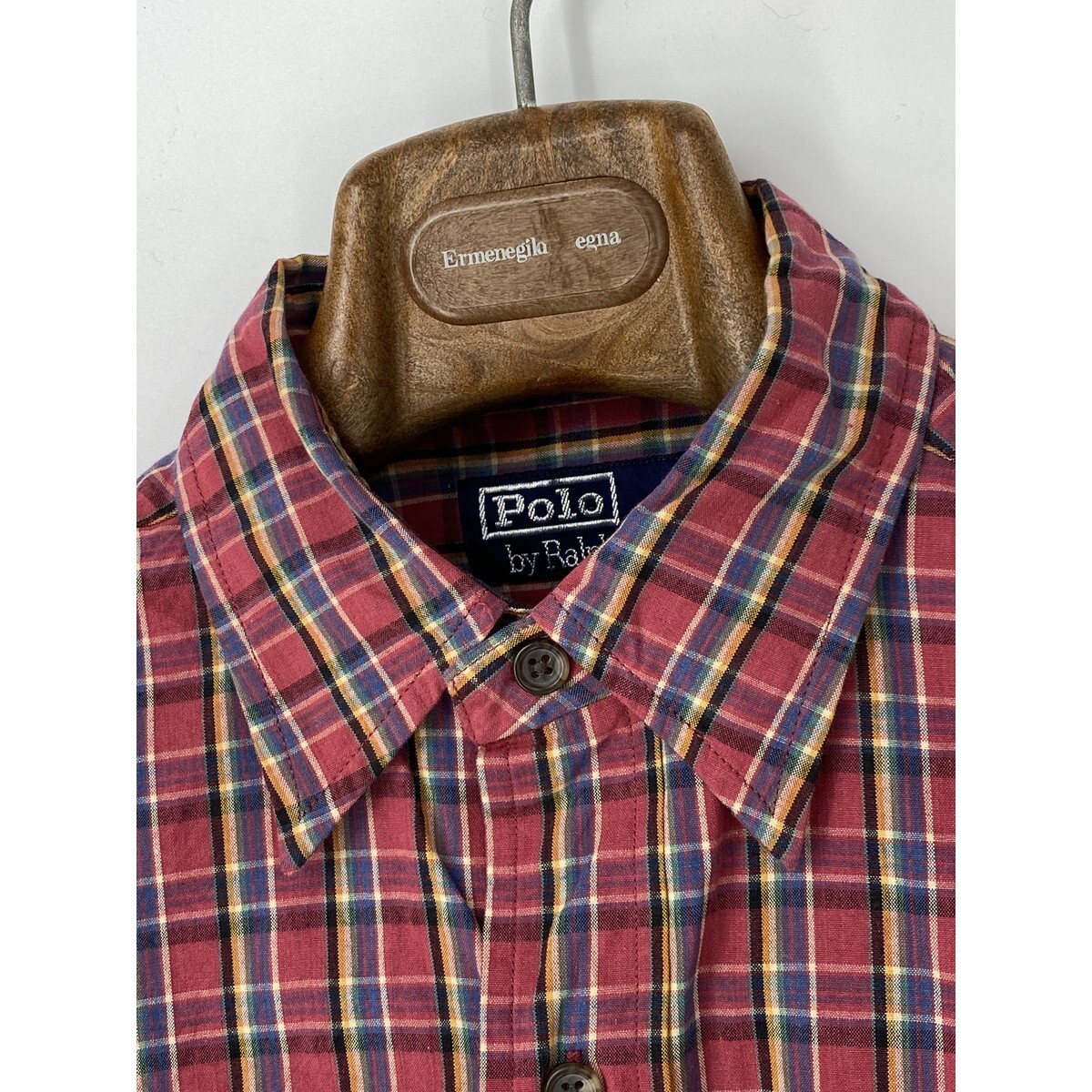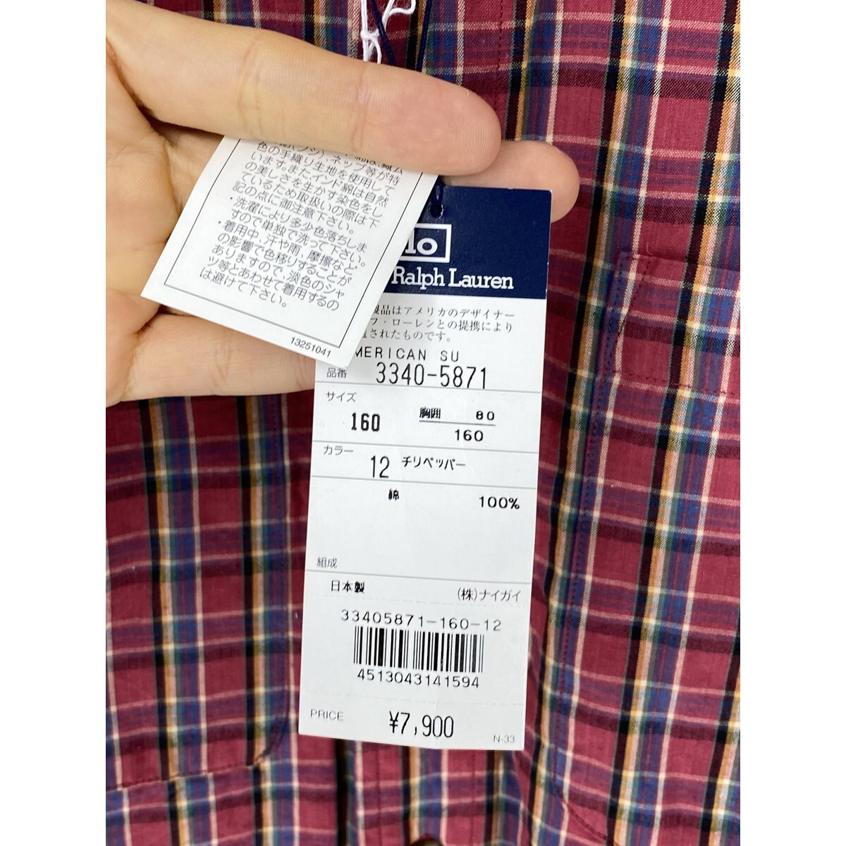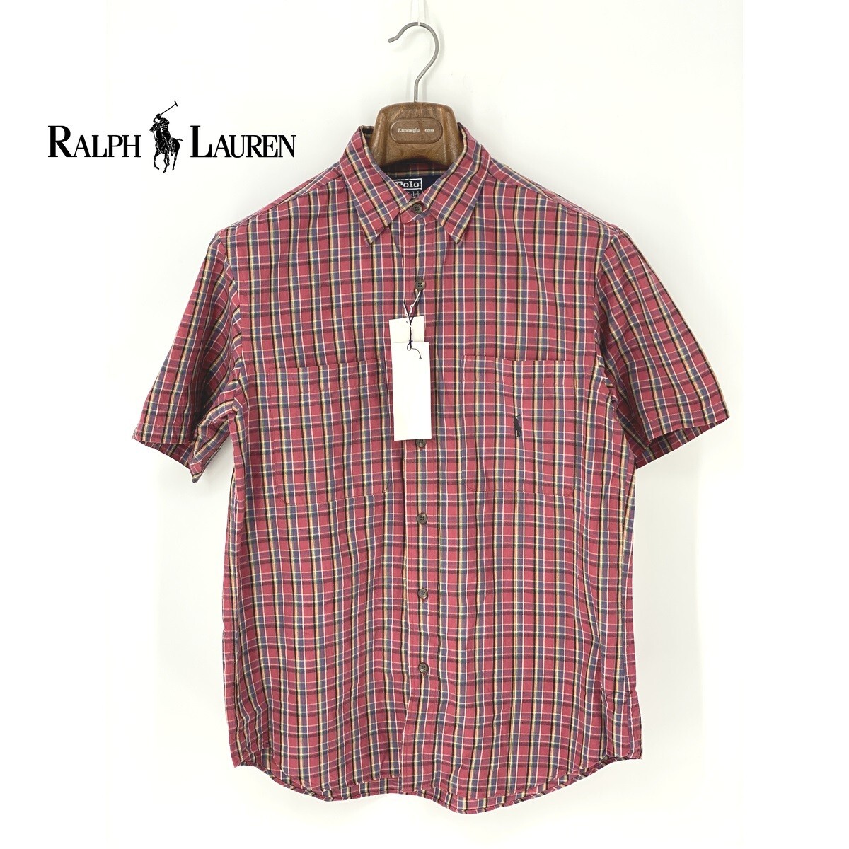 A8024/新品タグ付き 90s 春夏 POLO RALPH LAUREN ポロ ラルフローレン コットン チェック 半袖 ドレス カッター Yシャツ160 XS程 赤/メンズ